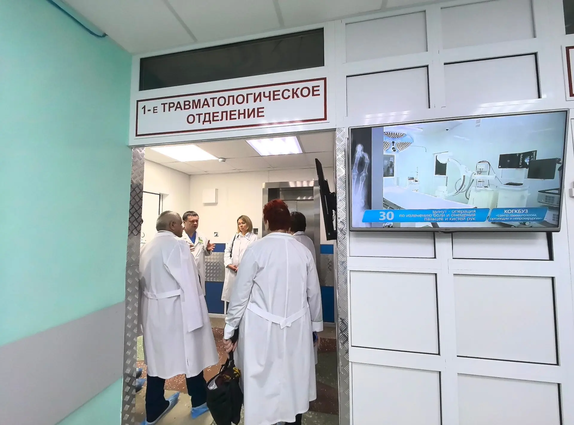 👉 В рамках визита члены Общественного совета посетили плановый приемный покой и травматологическое отделение экстренной помощи, некоторые профильные отделения клиники, а также амбулаторно-поликлиническую службу. Особое внимание было уделено вопросам маршрутизации пациентов и эффективности взаимодействия на всех этапах лечения. У гостей была возможность посмотреть оснащение палат, медицинское оборудование, а также увидеть реабилитационные мероприятия, проводимые в физиотерапевтическом и послеоперационном отделениях.