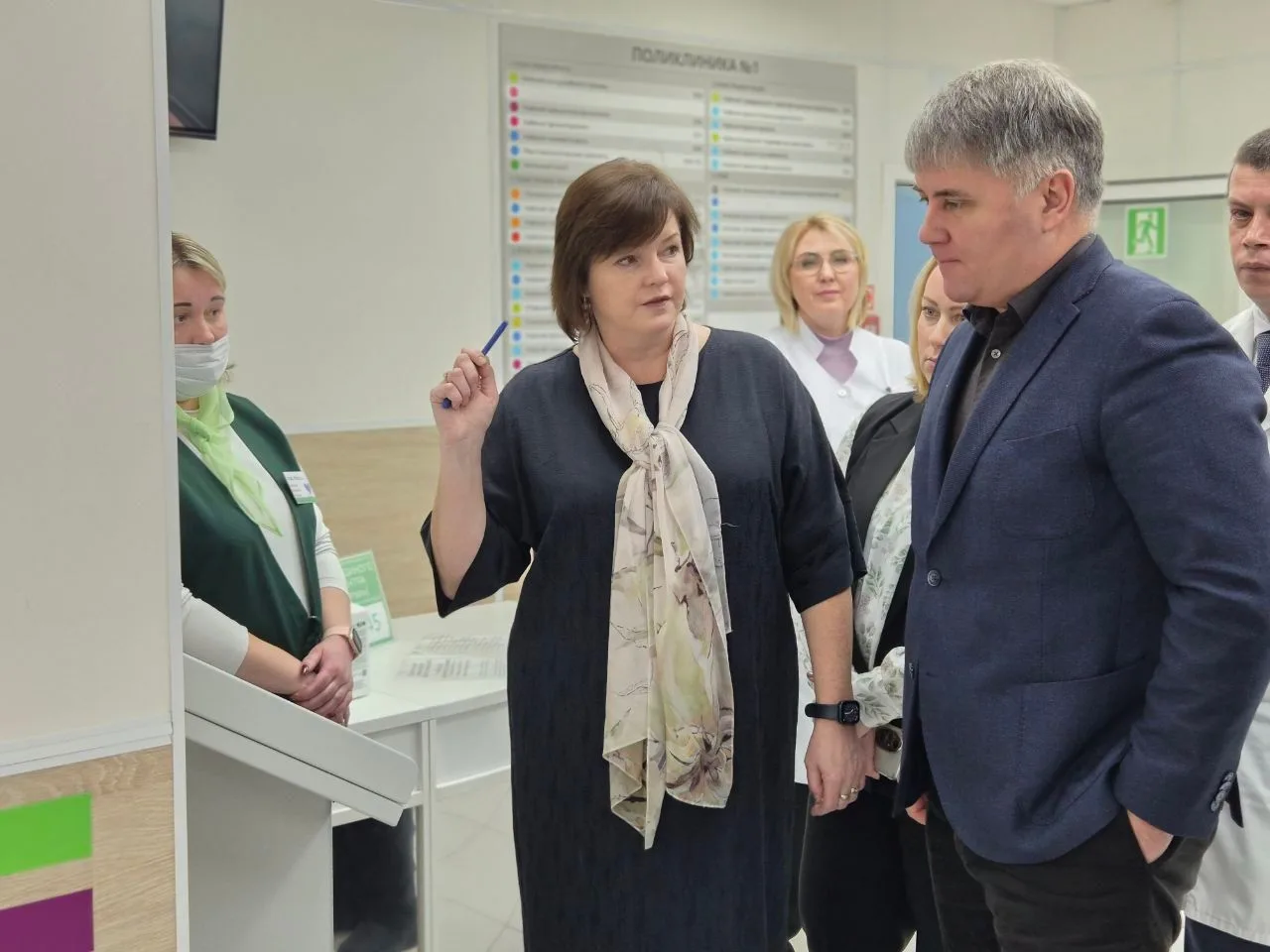 ✅ Экскурсию по поликлинике провела главный врач ККДЦ Софья Войтко. Гостю показали «открытую» регистратуру, единую медицинскую информационную систему, работу службы медицинских координаторов. Этот проект был реализован в медицинских организациях региона по инициативе первого зампреда правительства Дмитрия Курдюмова. Медицинский координатор помогает как в логистике, так и в решении вопросов по организации медицинской помощи, взаимодействуя для этого непосредственно с администрацией учреждения.