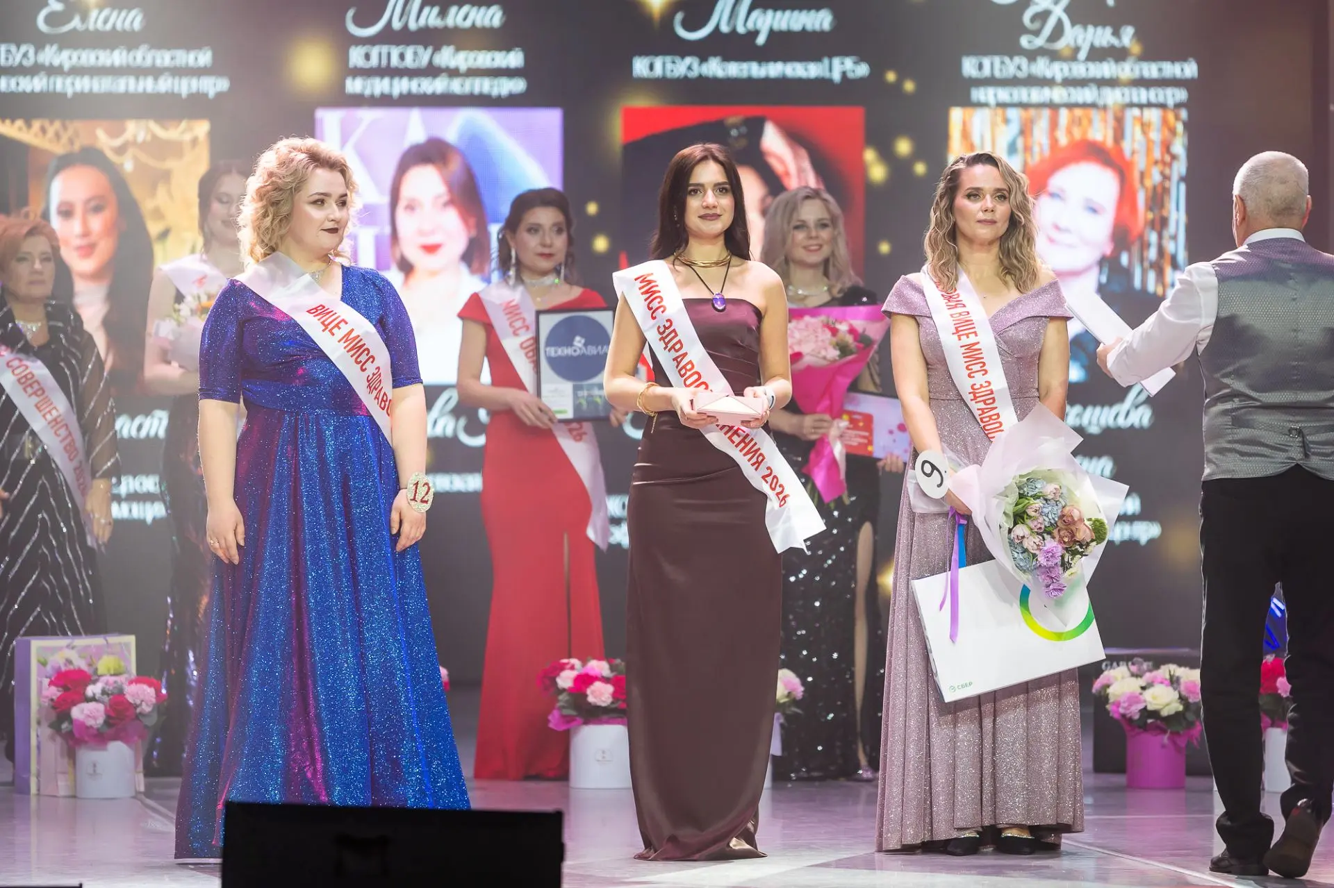 🌹По итогам конкурса третье место заняла врач акушер-гинеколог женской консультации №2 Кировского клинико-диагностического центра Оксана Сунцова, второе – врач анестезиолог-реаниматолог Кировского областного клинического перинатального центра Елена Кулыгина. Победителем в этом году, «Мисс здравоохранения» стала психолог Кировского областного наркологического диспансера Дарья Кузнецова.