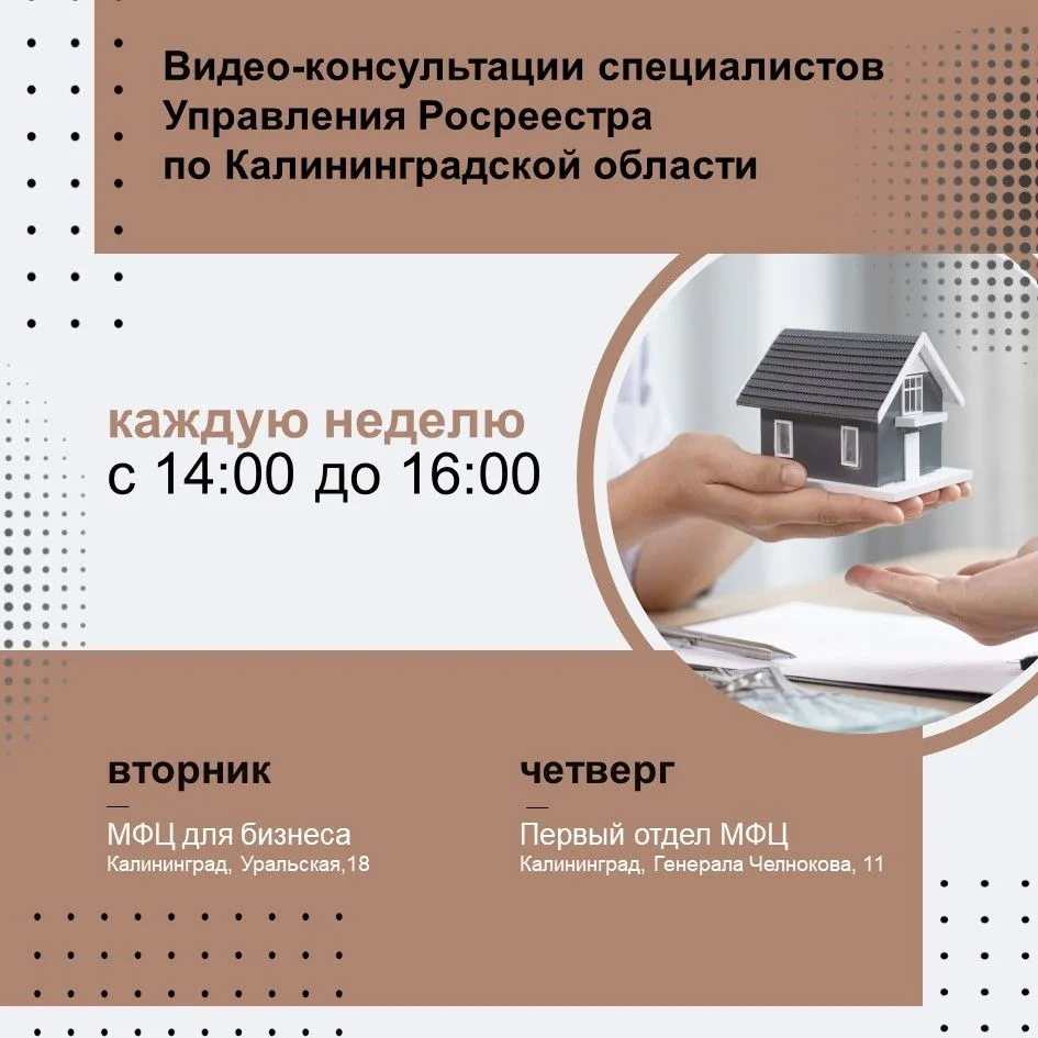 Консультирование граждан будет осуществляться очно в первом отделе МФЦ по адресу: город Калининград, улица Генерала Челнокова, 9 (ТЦ «Экватор», 4 этаж).
