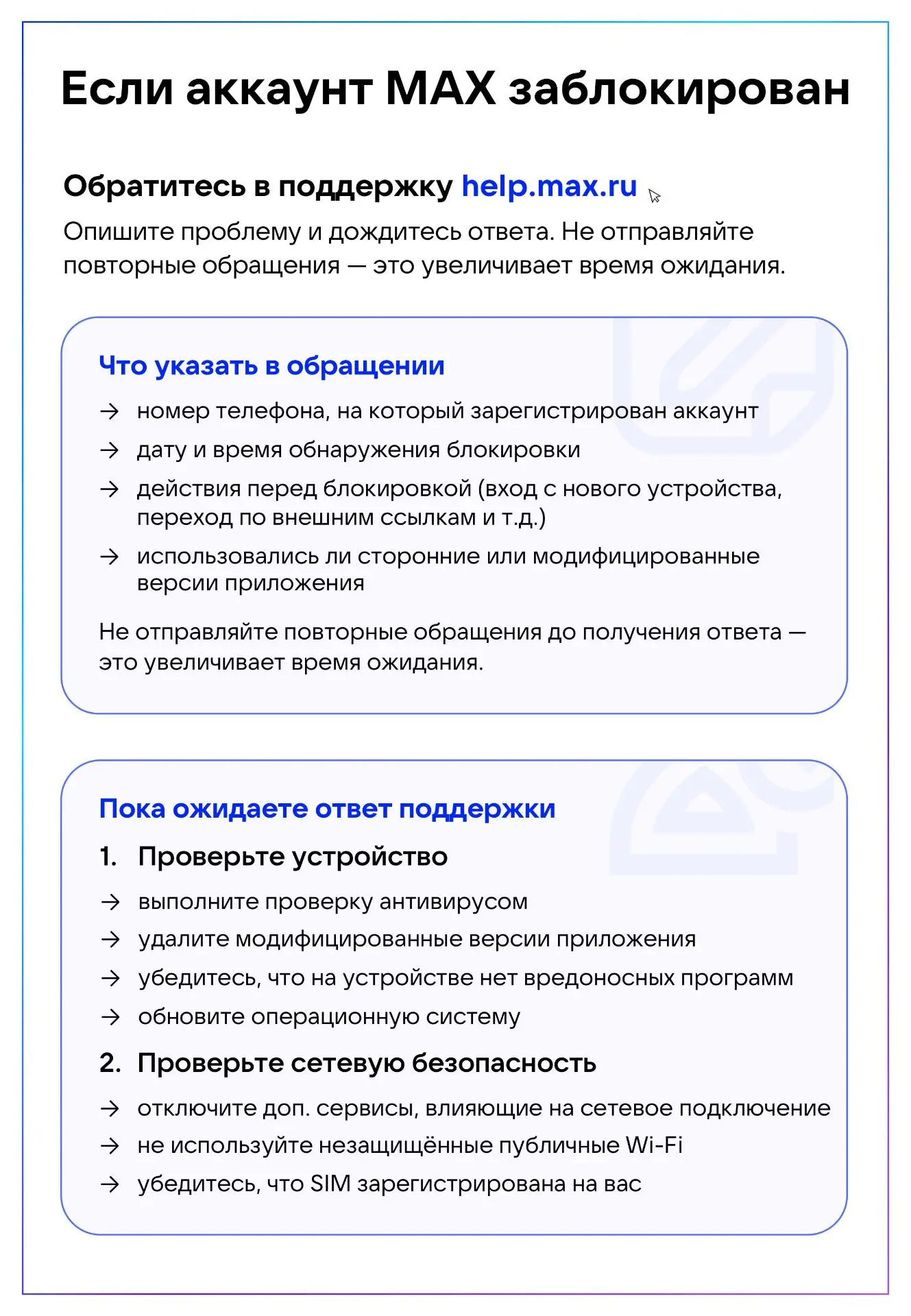Что делать, если ваш аккаунт в МАХ заблокировали?