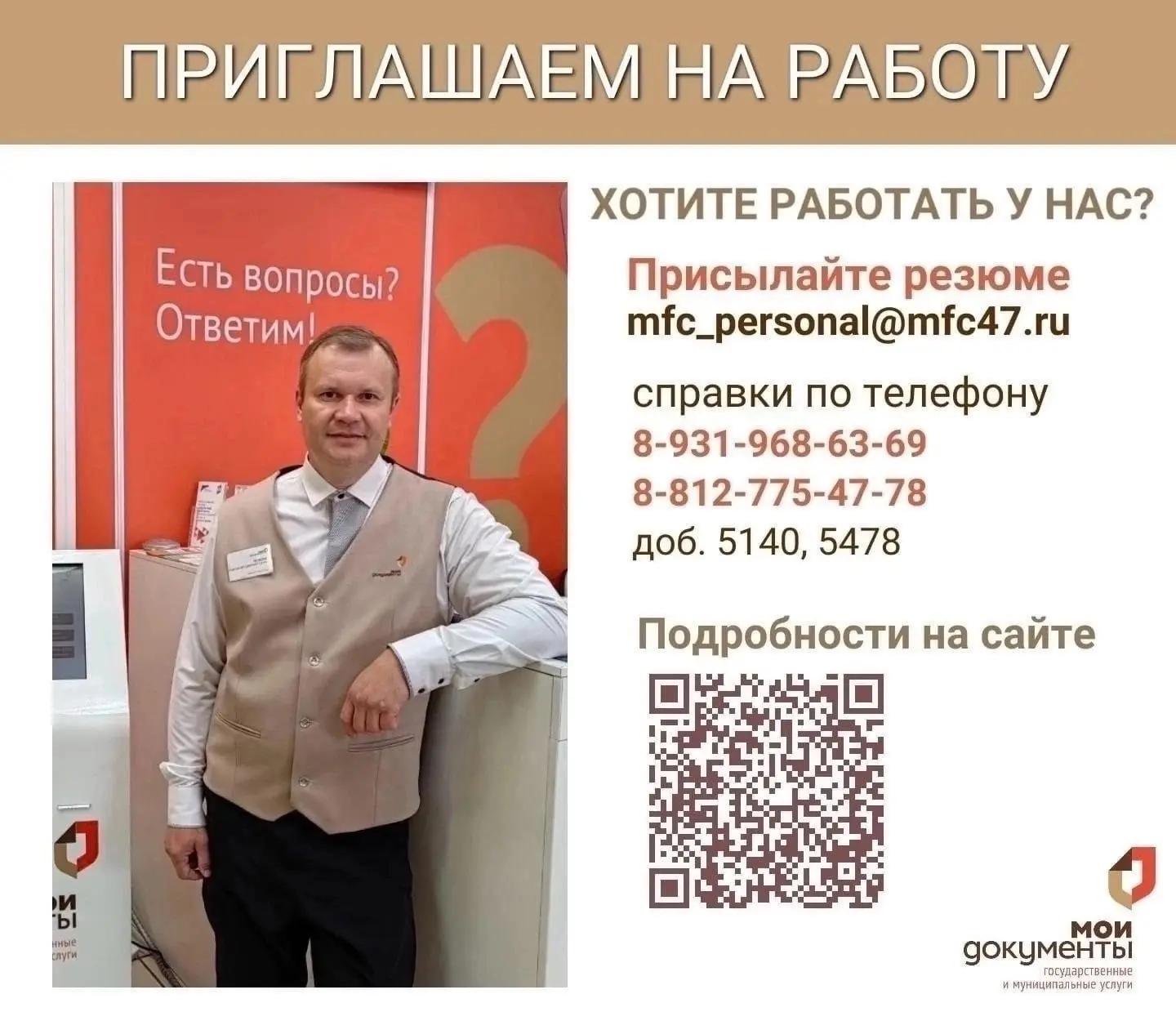 • удаленные рабочие места: режим работы уточняйте на mfc47.ru.
