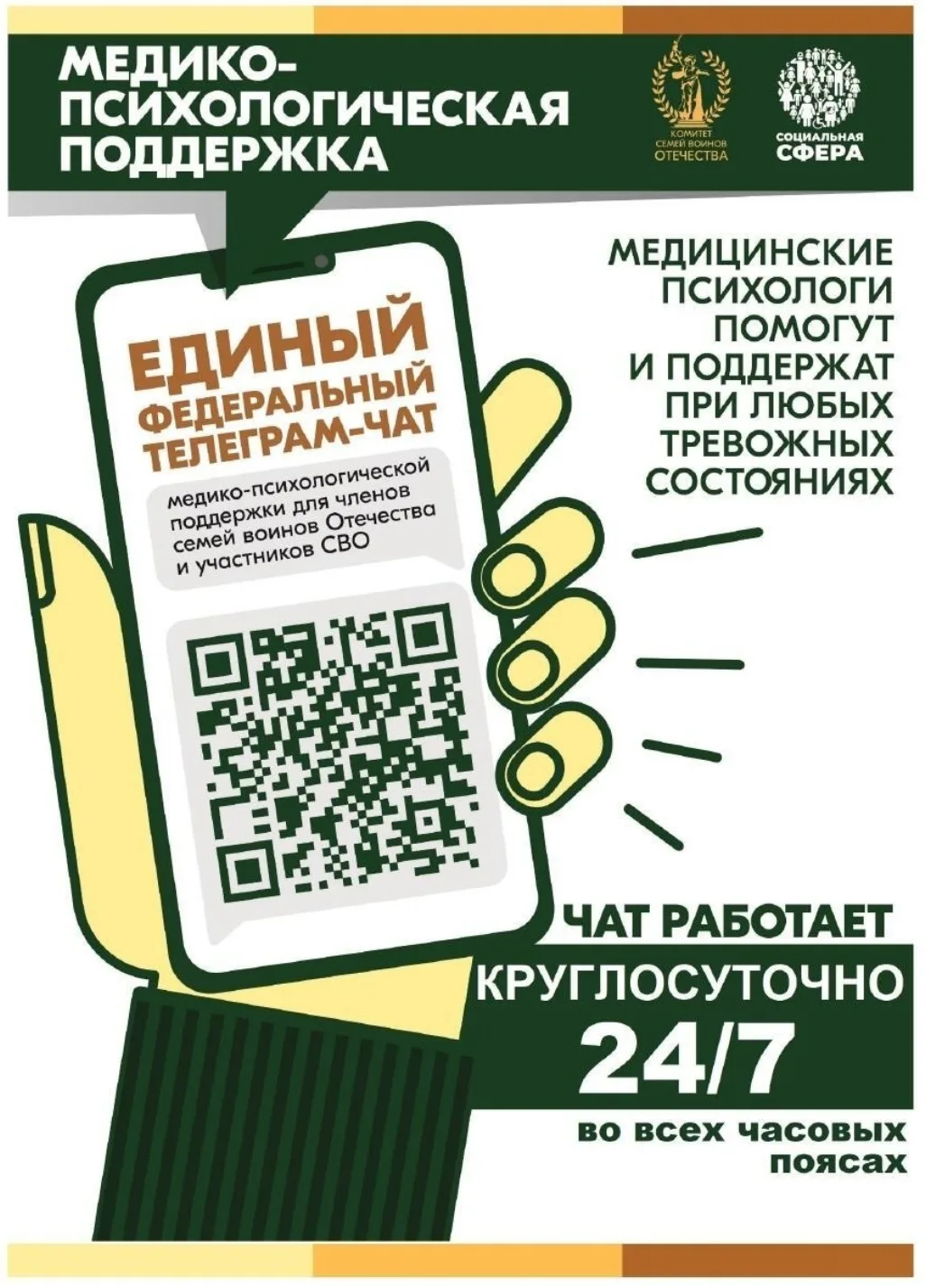 Сканируйте QR-код на картинке и переходите в единый федеральный чат Комитета семей воинов Отечества медико-психологической поддержки семей и участников СВО.