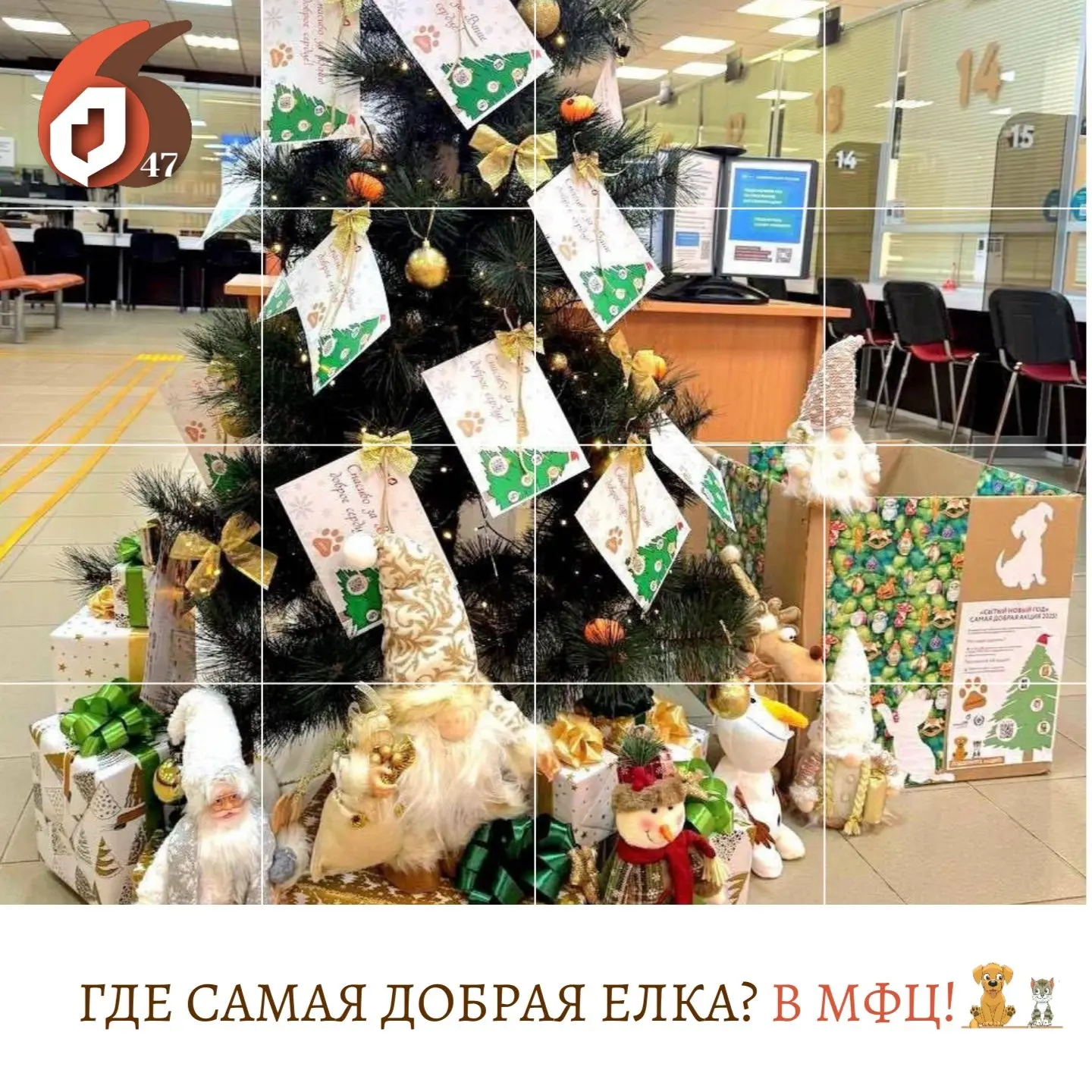 🖼️ На фото - добрые елки в отделах МФЦ Сертолово, «Коммунар» и первые добрые волшебники - дети!