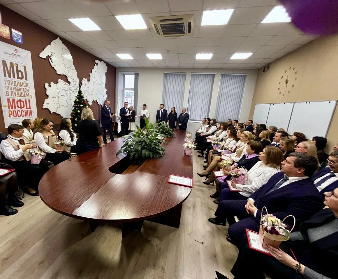 По традиции, в МФЦ Ленинградской области в торжественной обстановке вместе с первым паспортом
