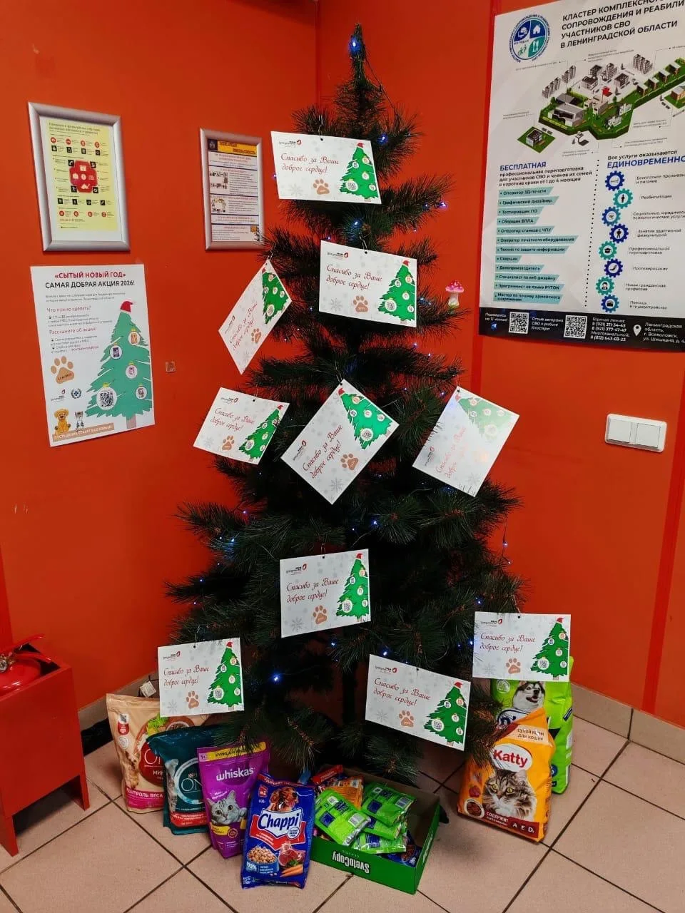 ❤️Елка украшена необычно: на ней открытки с надписью «Спасибо за доброе сердце!». Под елкой - корм для животных - подарки братьям нашим меньшим. Открытки адресованы добрым людям, которые приносят корм для бездомных животных в приютах.