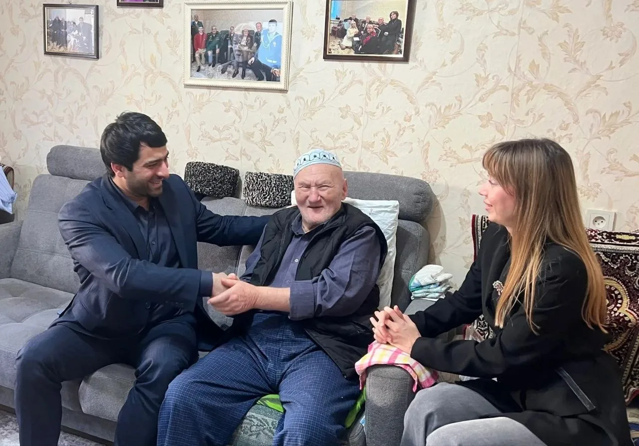 Заместитель директора МФЦ Абдулжелил Абдулжелилов вместе с коллегами навестили ветерана Великой Отечественной войны Мусу Мусаевича.