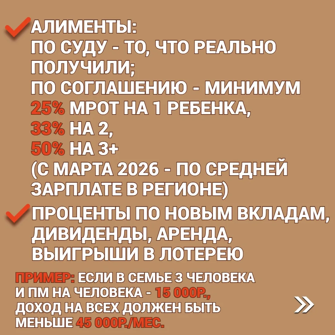 🏷️ Размер: 50%, 75% или 100% от прожиточного минимума (ПМ) на ребенка в вашем регионе.