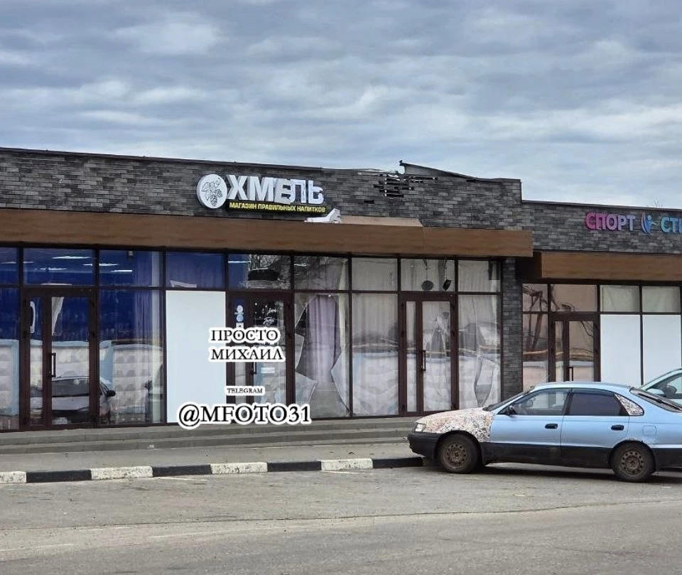 Шебекино коммерческий объект подвергся атаке дрона. Повреждены фасад и остекление торгового помещения и оборудование.
