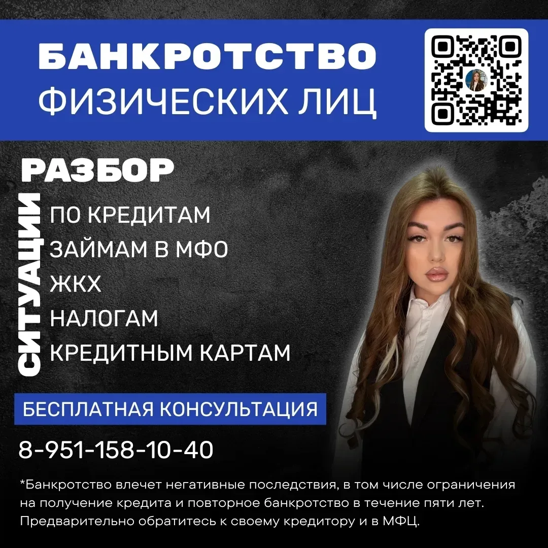 *Банкротство влечет негативные последствия, в том числе ограничения на получение кредита и повторное банкротство в течение пяти лет. Предварительно обратитесь к своему кредитору и в МФЦ.*