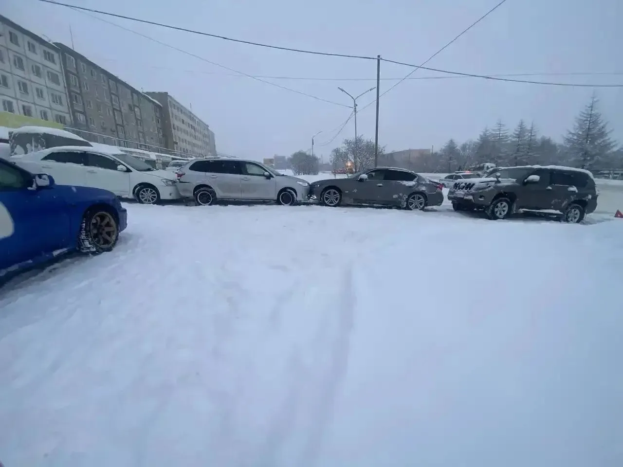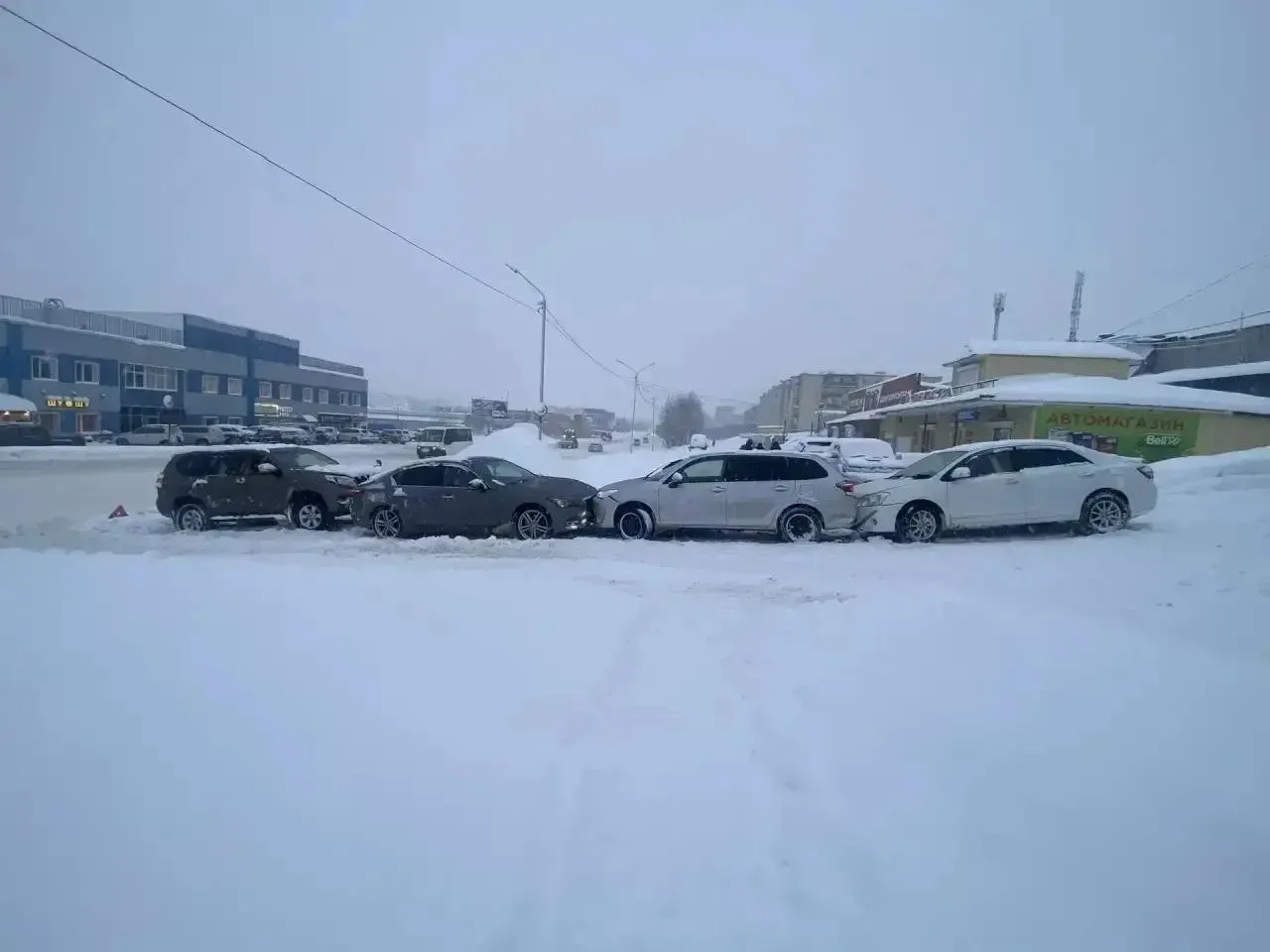 Автоинспекция разбирается в нестандартном столкновении четырех иномарок в Магадане