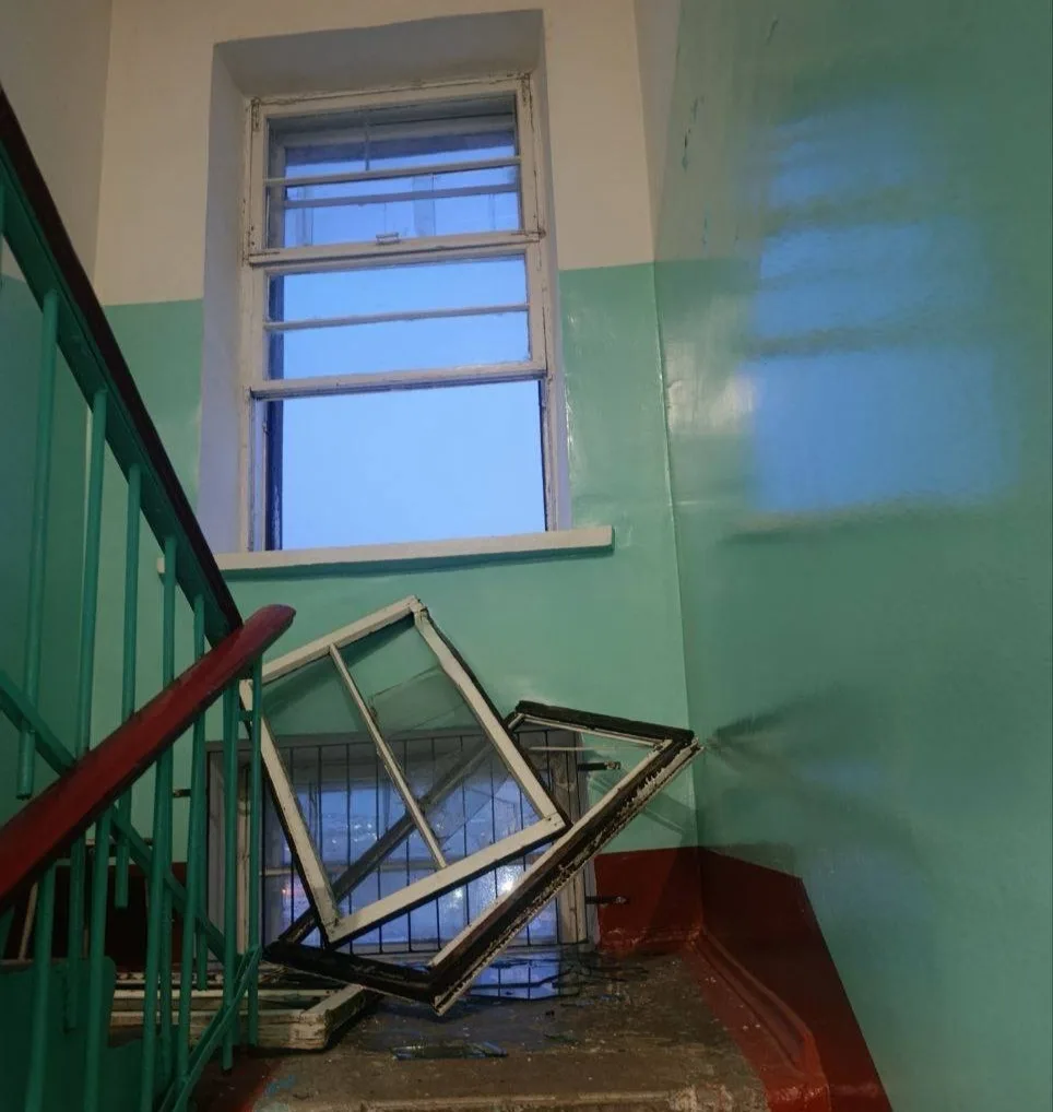 Неоднократно, на протяжение нескольких лет, просили УК заменить остекление в подъезде по пр. Вострецова д. 8... Остекление из кусочков в гнилой не функционирующей раме прибитой просто гвоздями... Зимой постоянно сквозняки и снег через щели.... При сильном ветре требезжание остекления и сквозняки... И вот итог!!! Пришла с работы называется... Хорошо сто не на голову сразу!!! Но все еще впереди-осталось 2 фрагмента остекления из 3. Как быть людям?! Вечер пятницы... Кто будет заниматься нашей безопасностью?!
