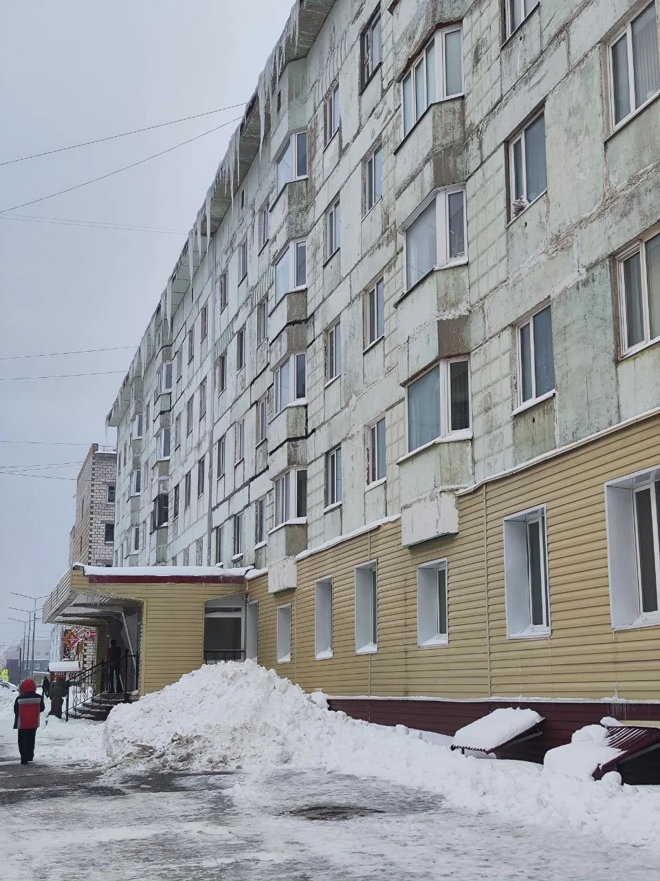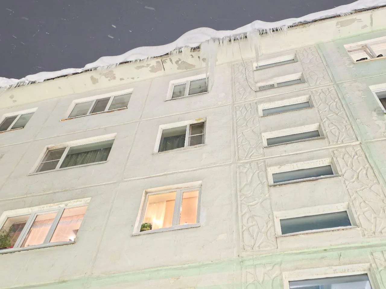 На ул. Берзина, д. 6 над подъездом висит огромная сосулька, управляющая компания не реагирует, страшно заходить и выходить с подъезда!