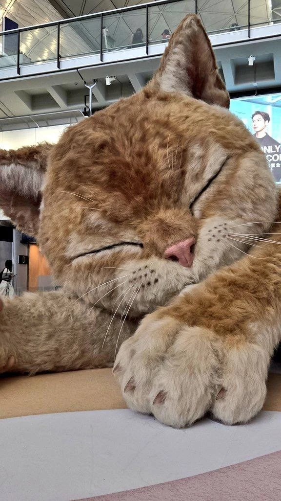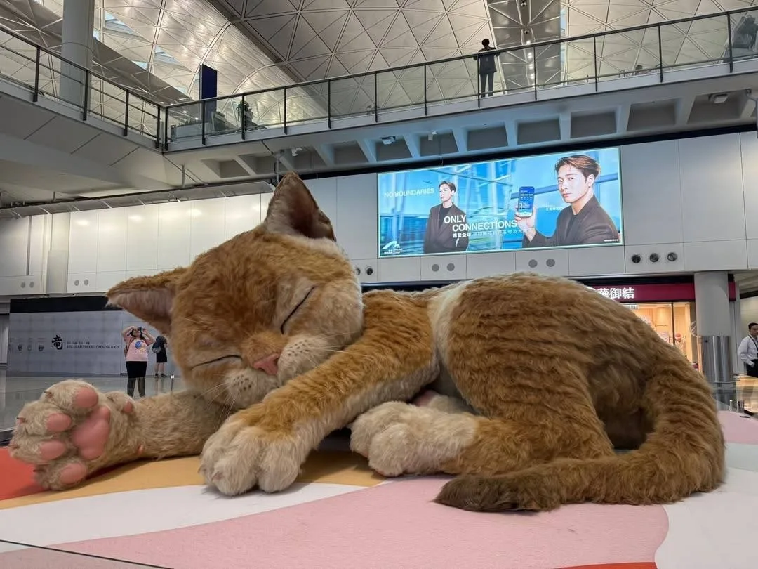 Огромный кот поселился в аэропорту Гонконга — и это не настоящий питомец, а впечатляющая инсталляция!