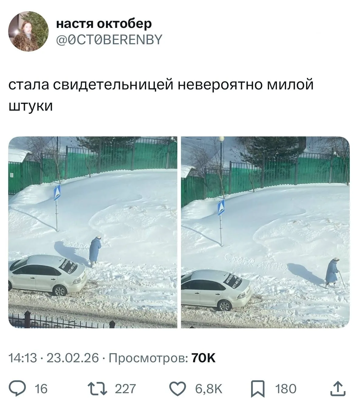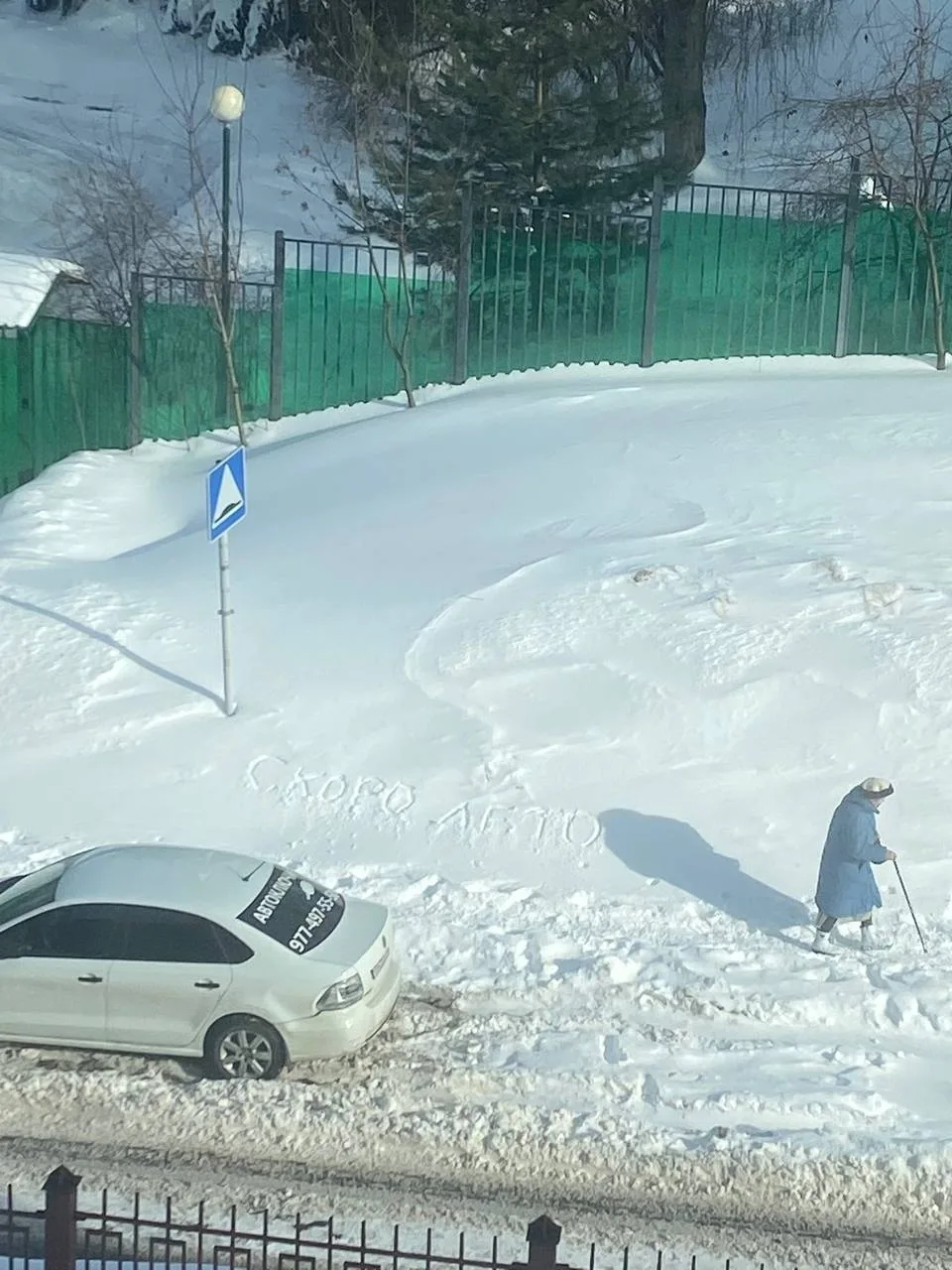 На снегу тростью бабушка написала «Скоро лето», и эта простая фраза подарила радость всем, кто её увидел.