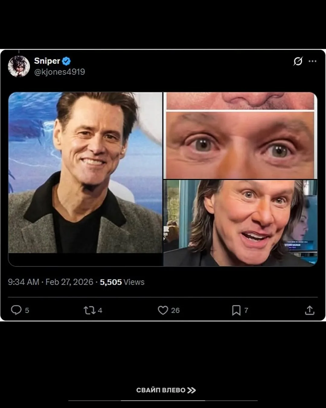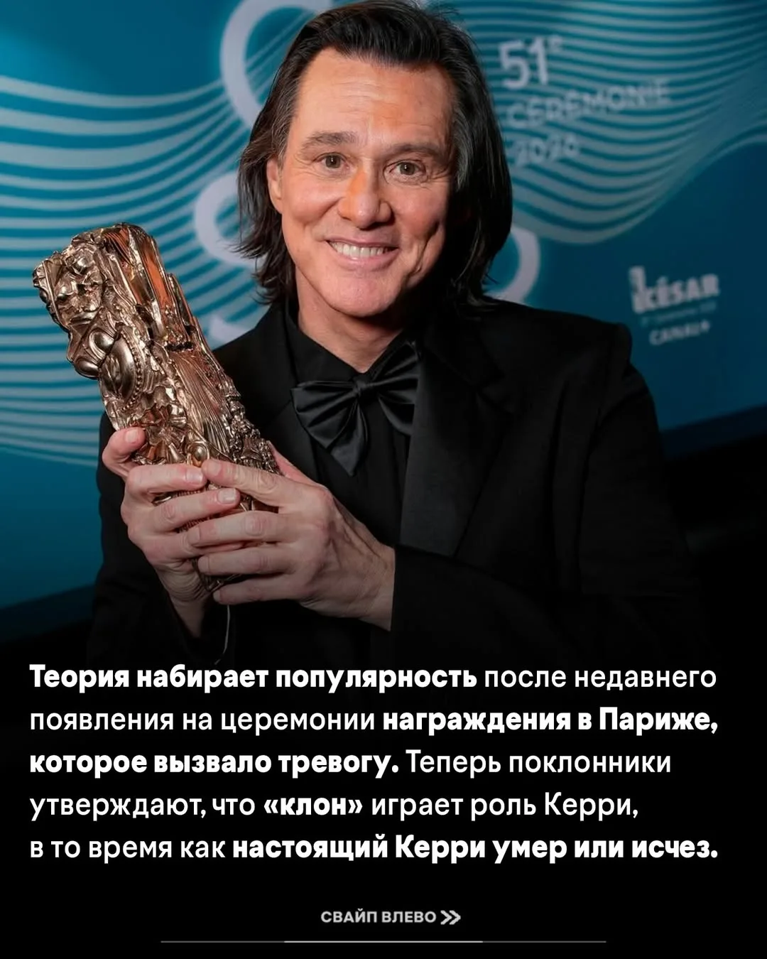 Фанаты Джима Керри обсуждают теорию заговора: якобы актёра заменили клоном.