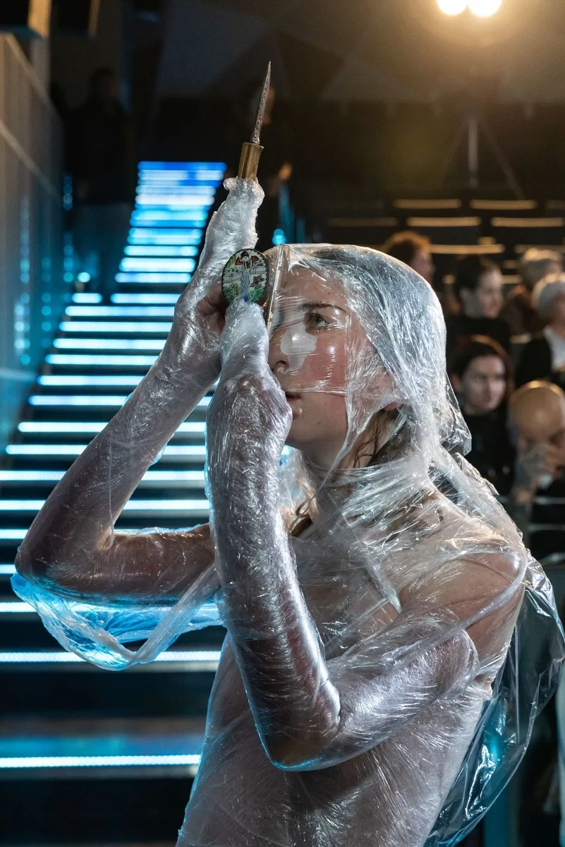 Она использует нестандартный метод прохождения испытаний: к её лицу прикреплён смартфон с запущенной нейросетью ChatGPT, которая в реальном времени подсказывает ответы.