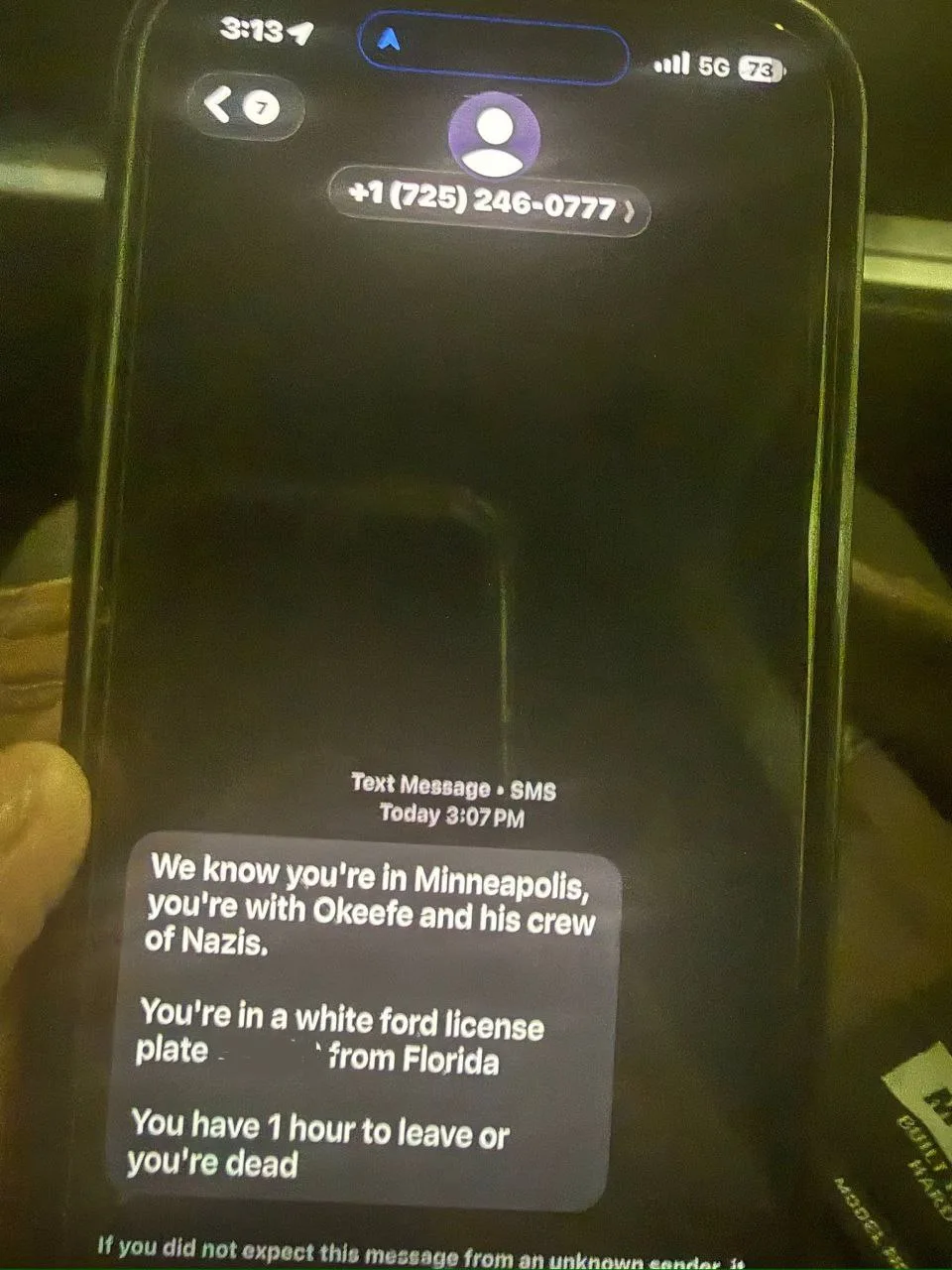 Сотрудникам ICE на номера телефонов начинают рассылать угрозы с их персональными данными (в данном случае — номером автомобиле) с обещаниями найти и убить.