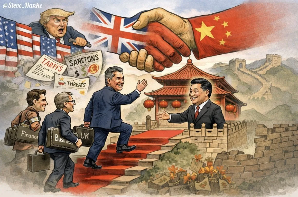 Популярный китайский фотограф и блогер Ли Цзэсин публикует такую карикатуру с комментарием о том, что Китай становится площадкой для коммуникации адекватных западных лидеров (намекая на визит в КНР британского премьера Стамера) на фоне неадекватного Трампа и ко.