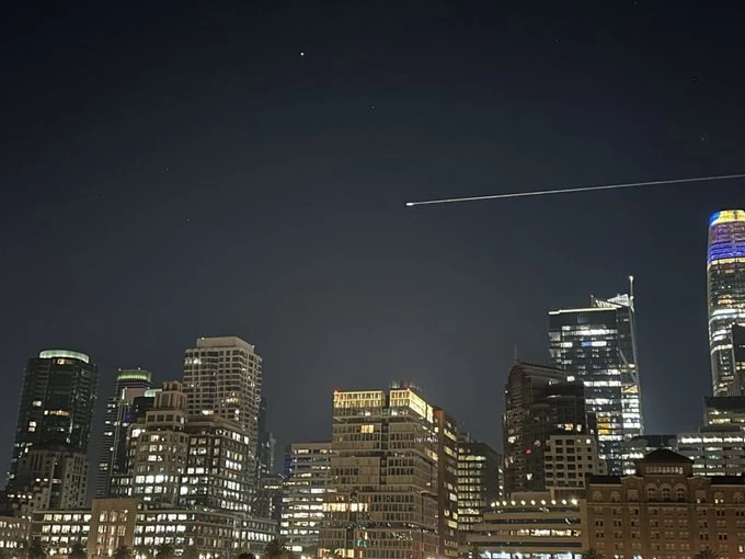 Потрясающие кадры сегодняшнего утра с идущей на посадку капсулой космического корабля Crew Dragon — в составе наш космонавт Олег Платонов — в небе над Сан-Франциско.