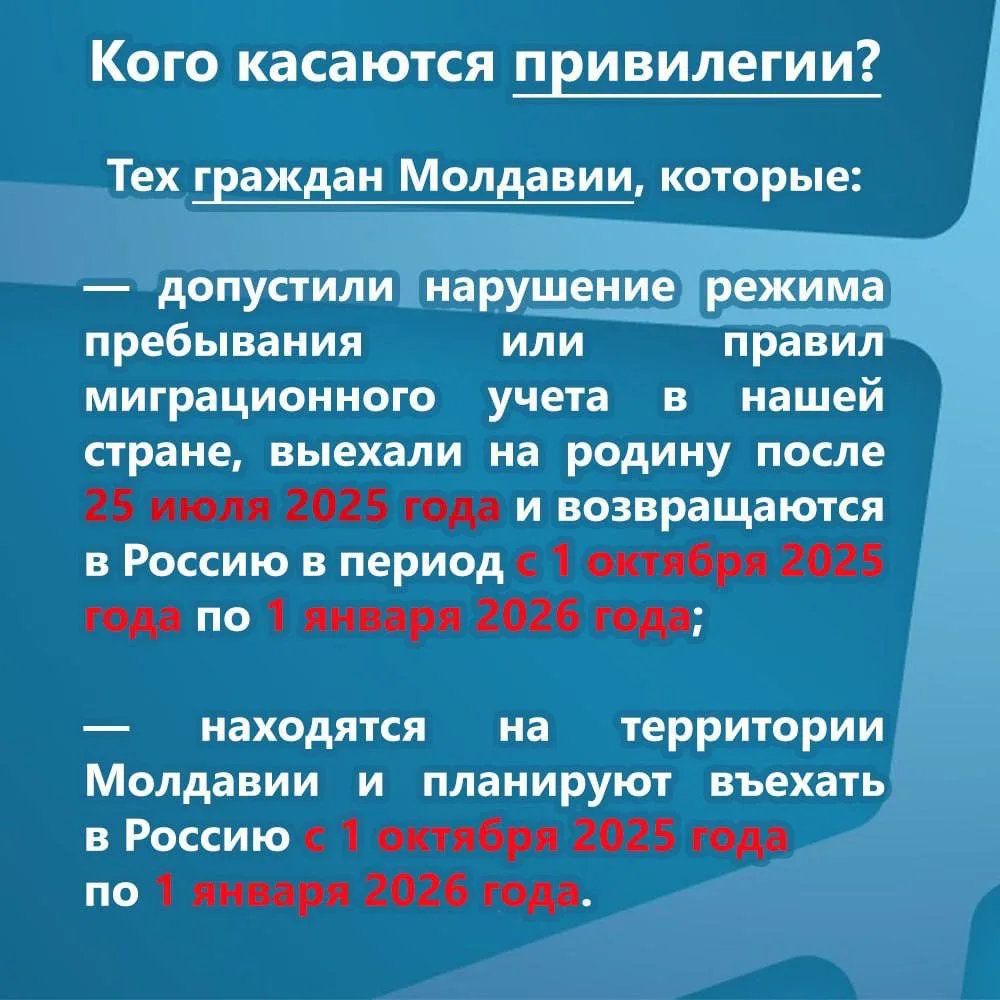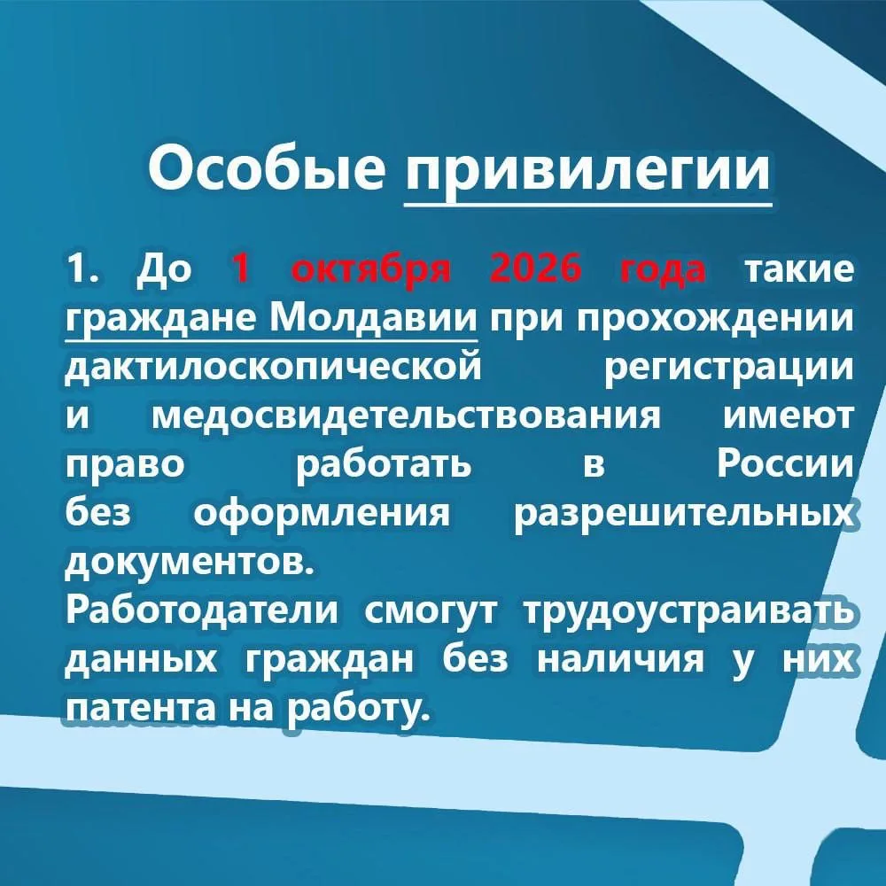 📢По решению Президента Российской Федерации для граждан Молдавии действуют особые условия пребывания в нашей стране.