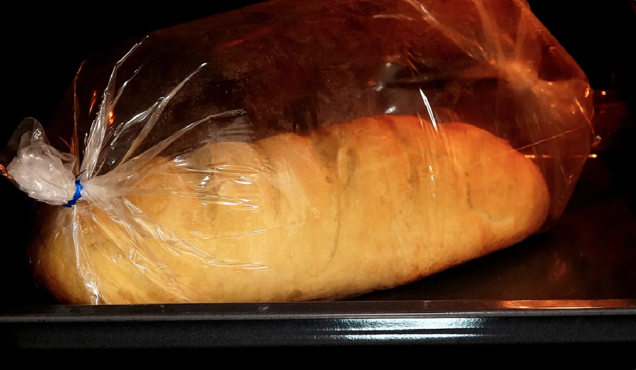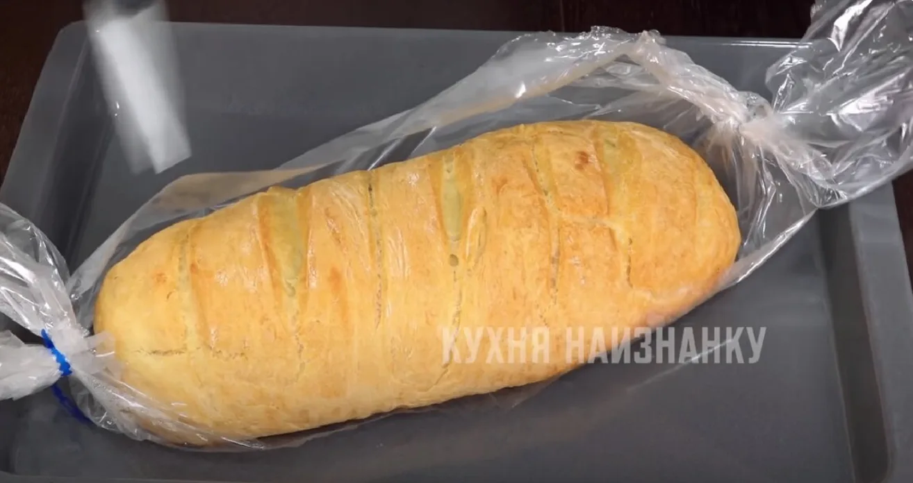 С готового хлеба сразу снимаю пакет и даю ему полностью остыть на решётке.