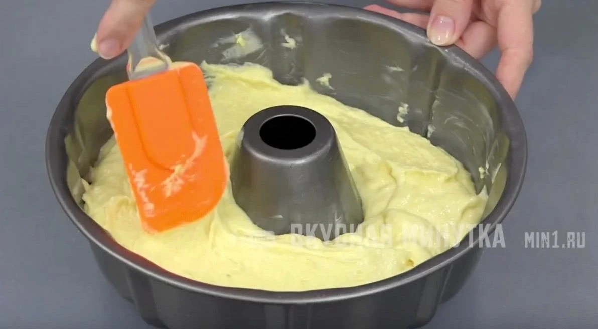 Перемешиваю тесто. Белки взбиваю со щепоткой соли и ввожу в тесто. Тесто выкладываю в смазанную маслом форму и ставлю в духовку.