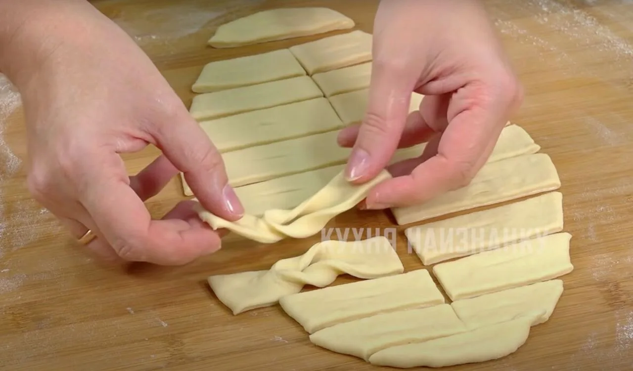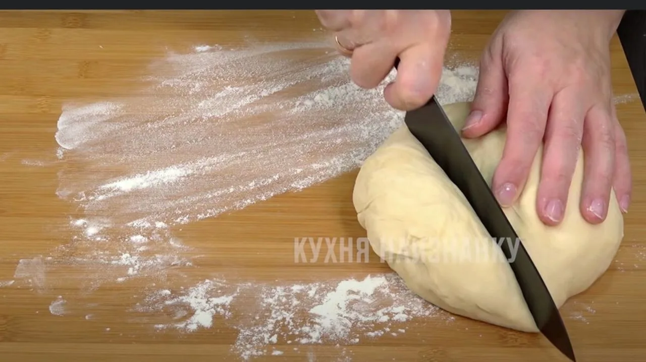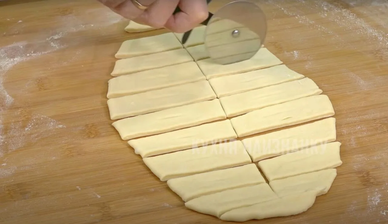 Раскатываю его толщиной 5-7 мм и нарезаю.