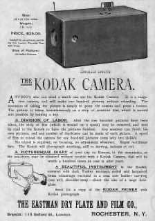 Осенью 1888 года вышел первый массовый фотоаппарат Kodak от компании Джорджа Истмана. Всего спустя 4 года после изобретения фотопленки.