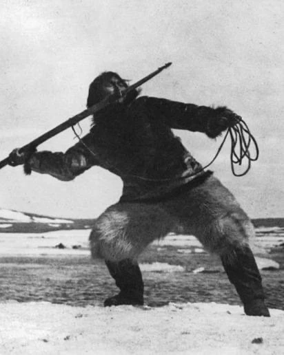Быт Нанука, надо сказать, был крайне архаичным. Он охотился с копьем, как первобытный человек, строил иглу для жены, а столкновение с цивилизацией переживал с недоумением и детской наивностью: в одной из сцен Нанук видит на торговом посту граммофон, и не разобравшись как тот работает, пытается съесть пластинку.