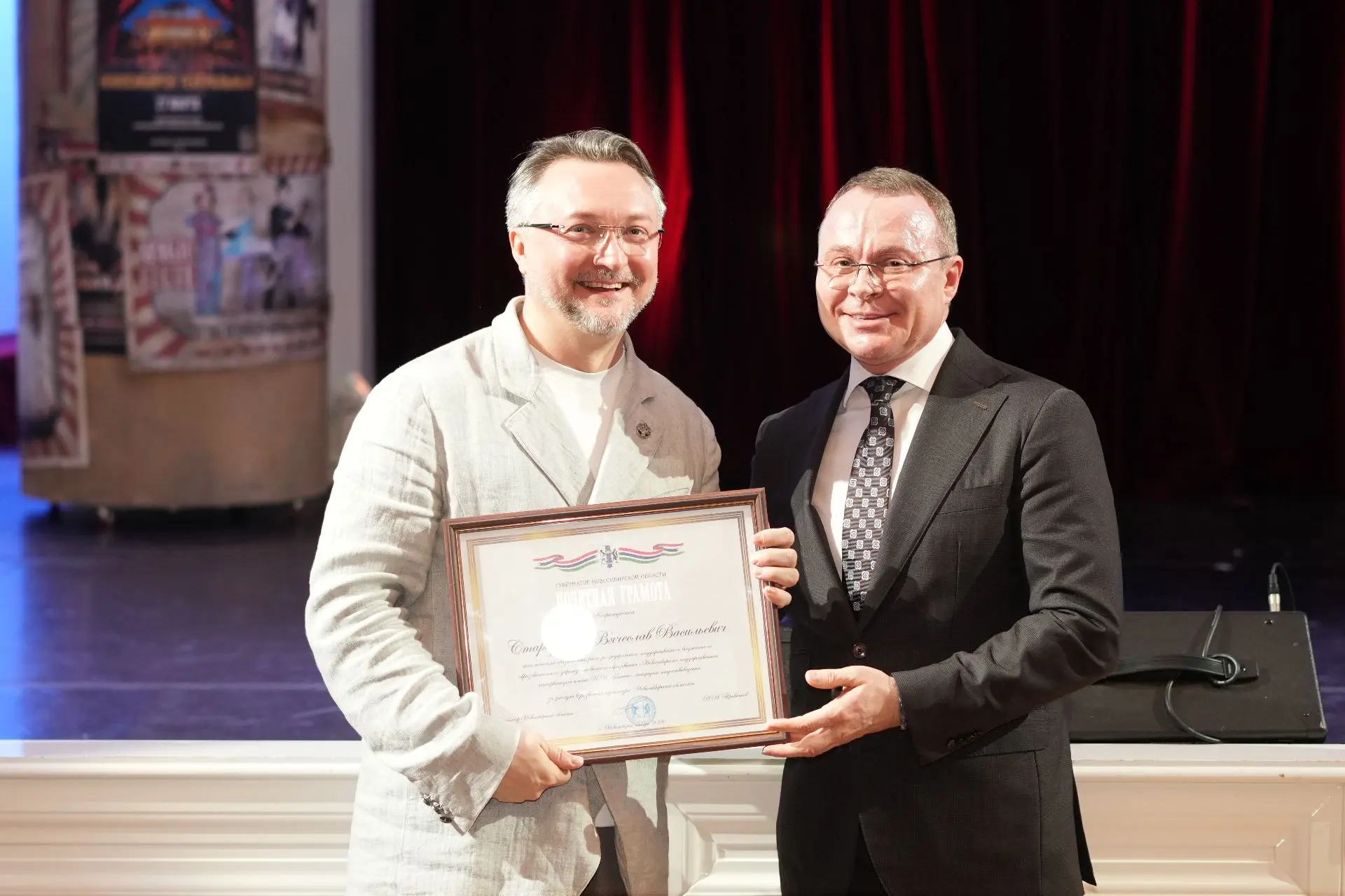 Театральных деятелей и ветеранов сцены со знаменательной датой от лица главы региона поздравил первый заместитель Губернатора Юрий Петухов. Также он совместно с министром культуры региона Юрием Зимняковым вручили им Почетные грамоты, Благодарности, благодарственные письма Губернатора и министерства культуры Новосибирской области.