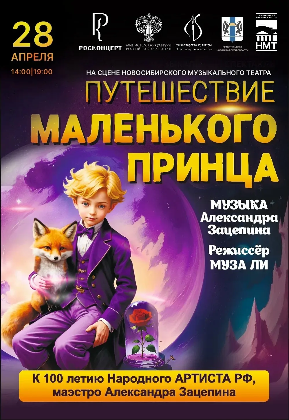 На сцене Новосибирского музыкального театра состоятся показы мюзикла «Путешествие Маленького принца» - постановки, созданной по мотивам произведения Антуана де Сент‑Экзюпери и сопровождаемой музыкой народного артиста России Александра Зацепина.