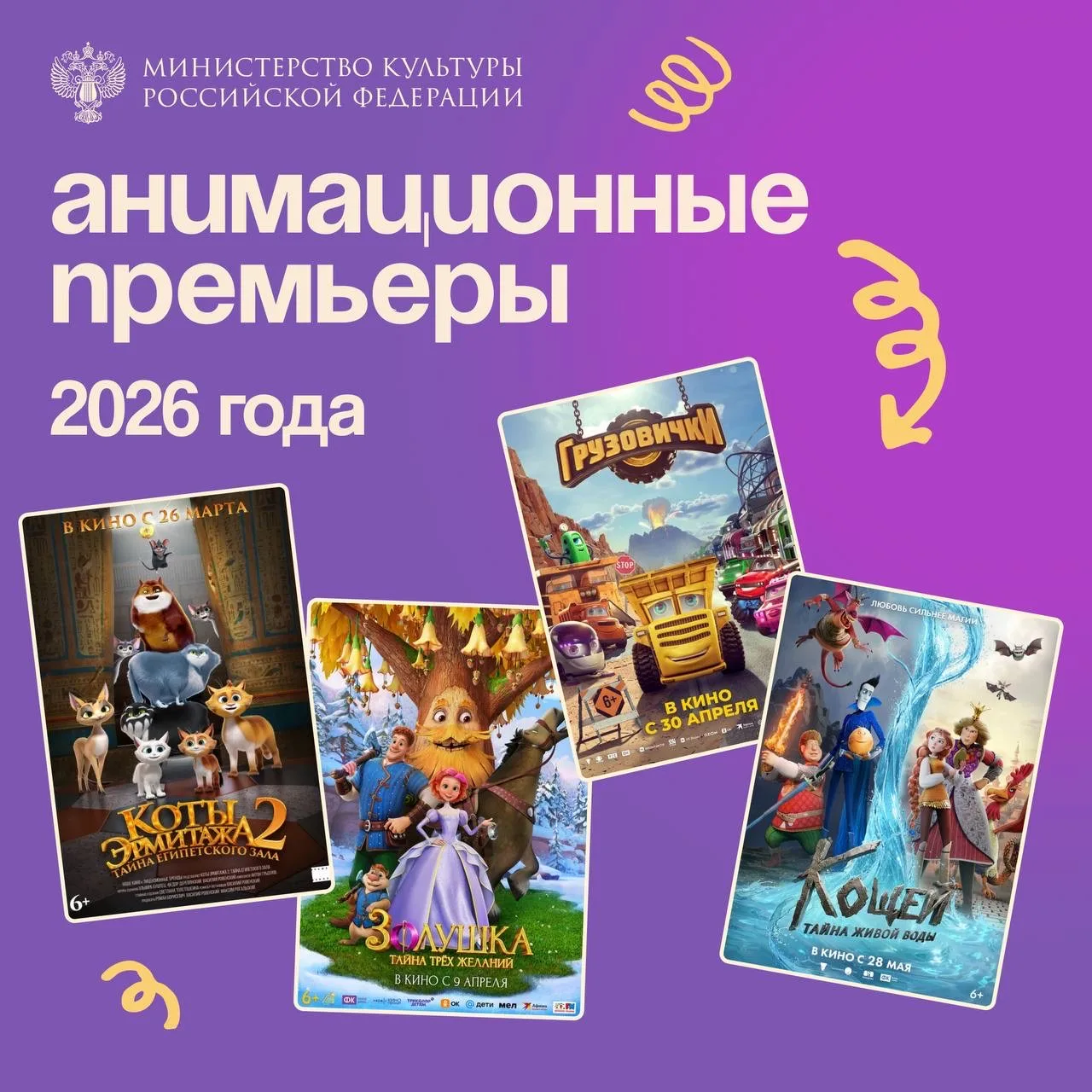 #вЭтотДень 8 апреля в нашей стране отмечают День российской анимации. В честь праздника делимся подборкой анимационных премьер 2026 года: