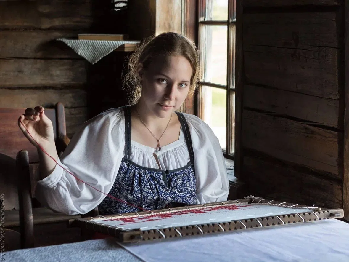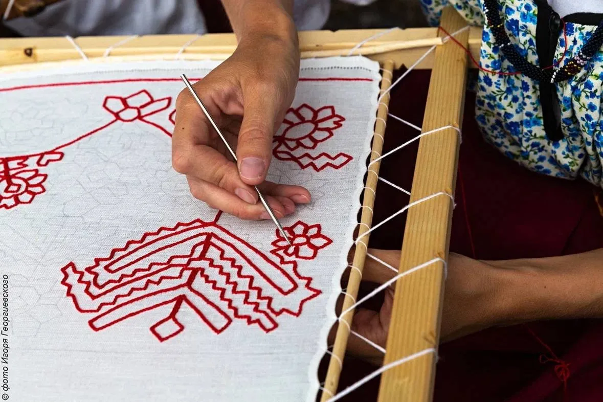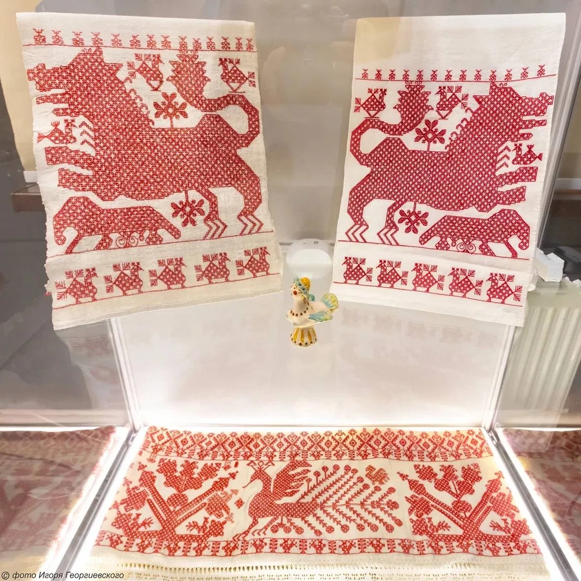 🧵 Вышивка — традиционное крестьянское ремесло и одно из главных женских занятий. Изделия (полотенца, подзоры) играли ключевую роль в свадебной обрядности. Мастерство передавалось из поколения в поколение через старинные образцы, сохраняя архаичные языческие мотивы, и определяло престиж девушки в сельской общине.