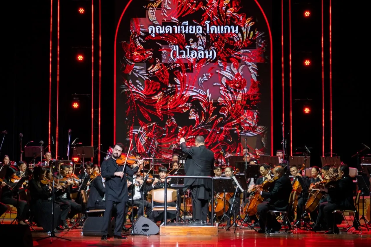 На сцене Таиландского культурного центра выступили российские музыканты – лауреаты ХVII Международного конкурса имени П.И.Чайковского: обладатель Первой премии пианист Дмитрий Маслеев, Третьей премии – скрипач Даниил Коган и Четвертой премии – тенор Игорь Морозов. В программе вечера прозвучали композиции Сергея Рахманинова, вокальные арии из опер «Евгений Онегин» и «Пиковая дама» Петра Чайковского, а также русские народные песни.