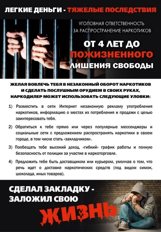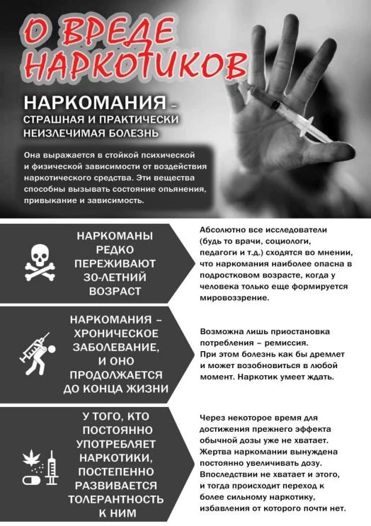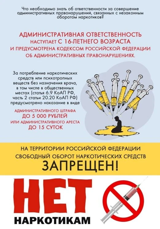Антинаркотическая комиссия Смоленской области информирует о вреде и последствиях потребления наркотических средств, а также об уголовной ответственности за преступления в сфере оборота наркотиков.