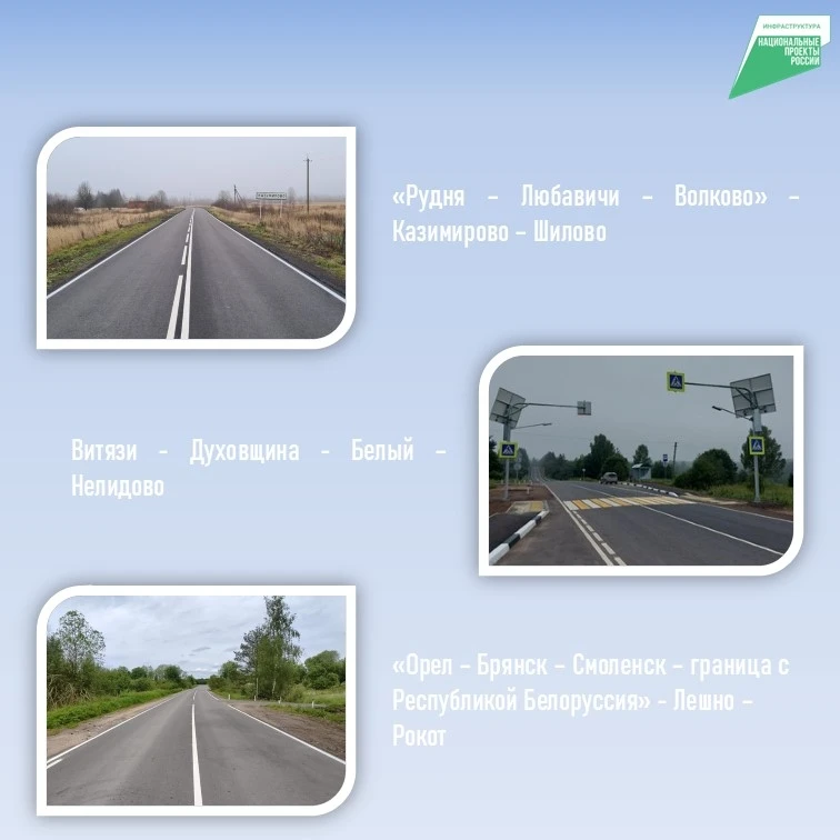 Самыми протяженными объектами 2025 года стали «Рудня – Любавичи – Волково» – Казимирово – Шилово (8 км), Витязи – Духовщина – Белый – Нелидово (7,65 км), «Орел – Брянск – Смоленск – граница с Республикой Белоруссия» - Лешно – Рокот (6,6 км).