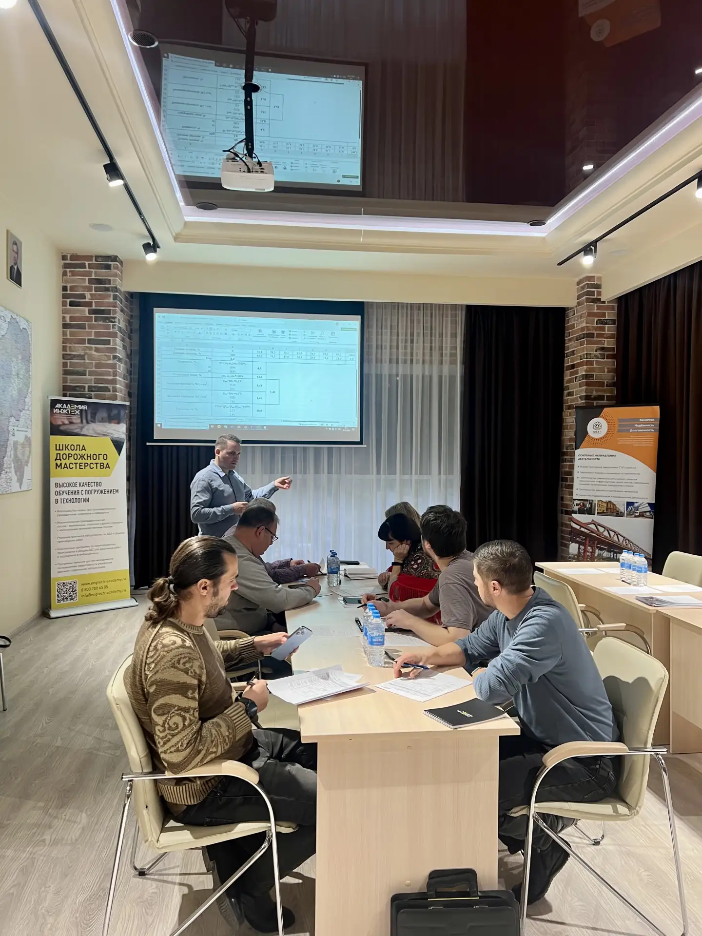 Практически месяц участники из ФКУ Упрдор Москва-Бобруйск, СОГБУ «Смоленскавтодор», ООО «Техно-4», ООО «ДРСУ 67», ООО «Рославльская ДСПМК» погружались в вопросы обеспечения качества материалов и работ на всех этапах от проектирования, производства до укладки асфальтобетонной смеси, разбирая технологические процессы и анализируя причинно-следственные связи возникающих дефектов. В ходе очных занятий были организованы технические выезды в лабораторию СОГБУ «Смоленскавтодор» и на асфальтобетонный завод ООО «СК ИНДУСТРИЯ».