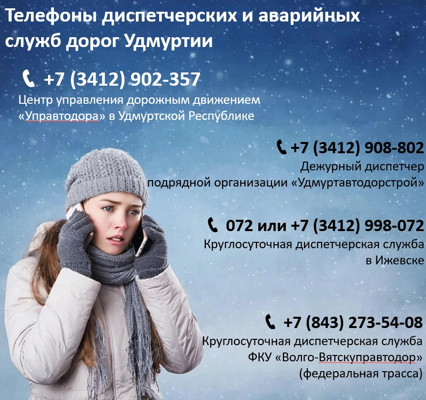 О проблемах на дорогах можно сообщить по телефонам диспетчерских служб.