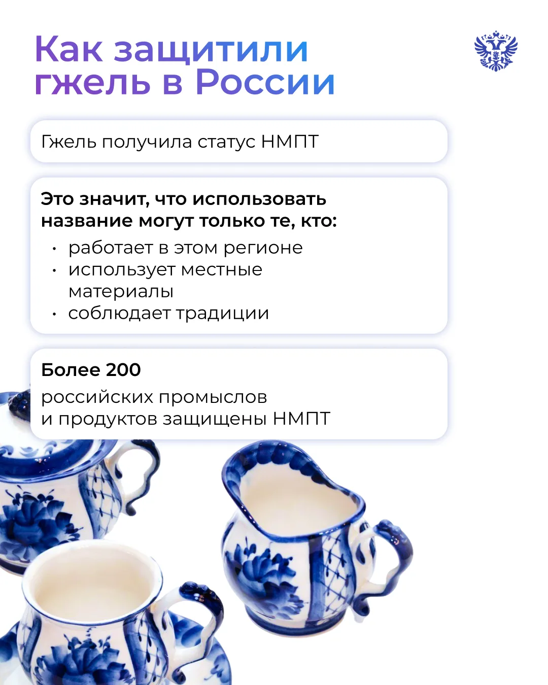 🔘Гжель — первый региональный бренд России, получивший международную правовую охрану.