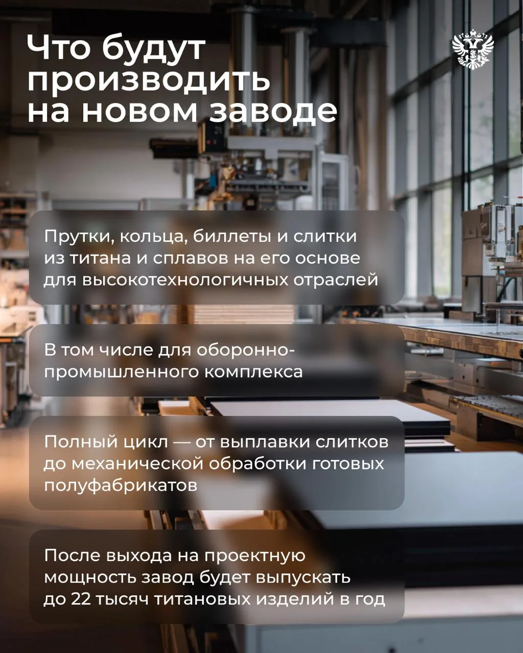 🔘Александр Новак дал старт новому производству в ОЭЗ Титановая долина.