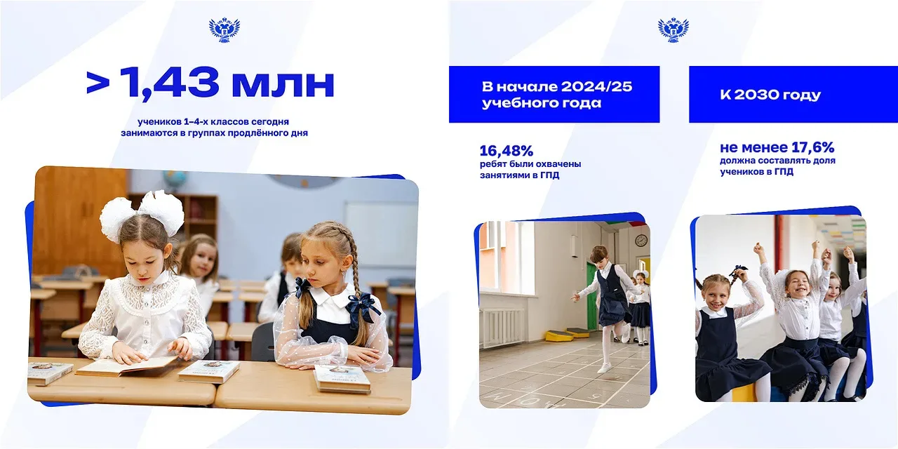 🔹 Во всех образовательных организациях введены рабочие программы воспитания. Растут охваты программами социальной активности детей и молодёжи: «Орлята России», «ЮНАРМИЯ», «Движение Первых». Ключевыми в прошедшем году 80-летия Великой Победы стали события проекта «Без срока давности». Продолжается просветительская деятельность мультимедийных исторических парков «Россия — Моя история».