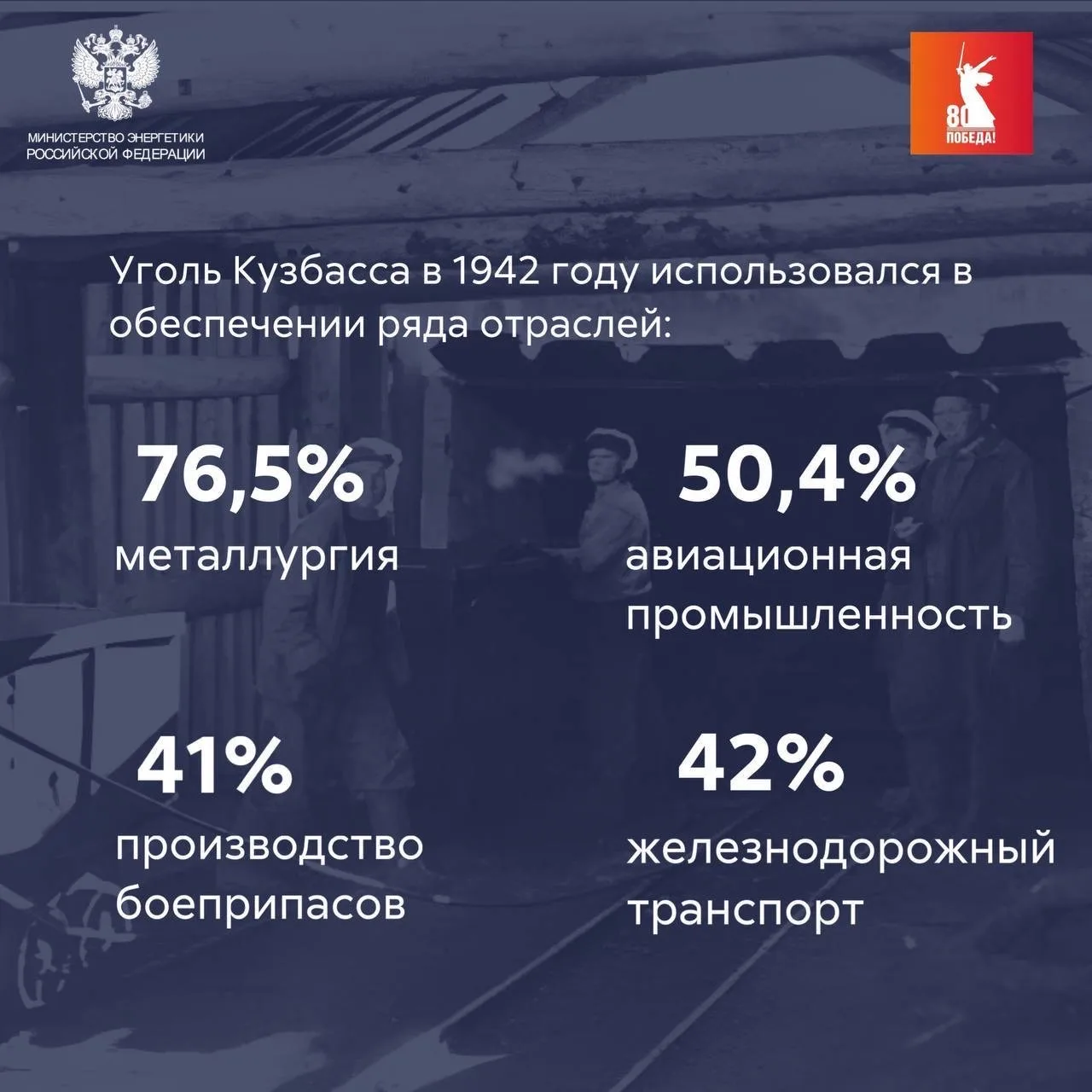 ℹ️ В годы Великой Отечественной войны Кузбасс, как один из ключевых угольных регионов СССР, сыграл решающую роль в обеспечении фронта и тыла углём, необходимым для производства вооружения, металла и других стратегически важных ресурсов.