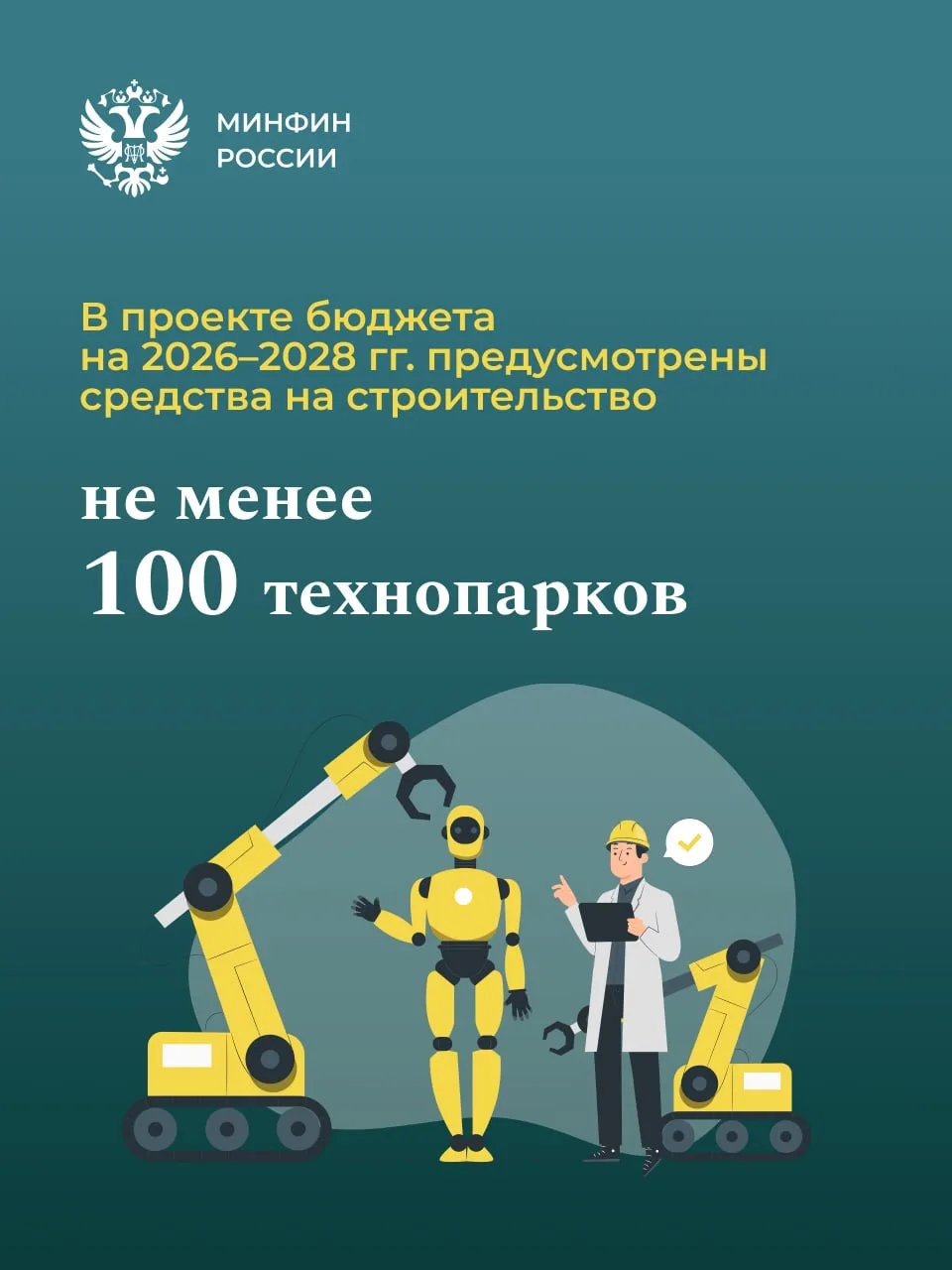 🔹 ТАСС: Проект бюджета позволит построить не менее 100 технопарков к 2030 году