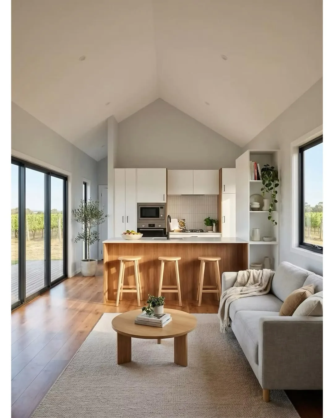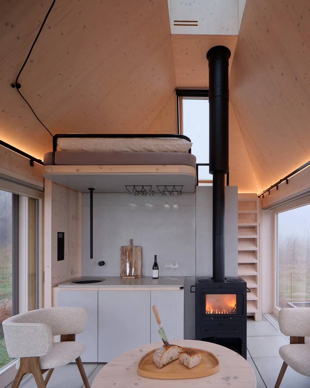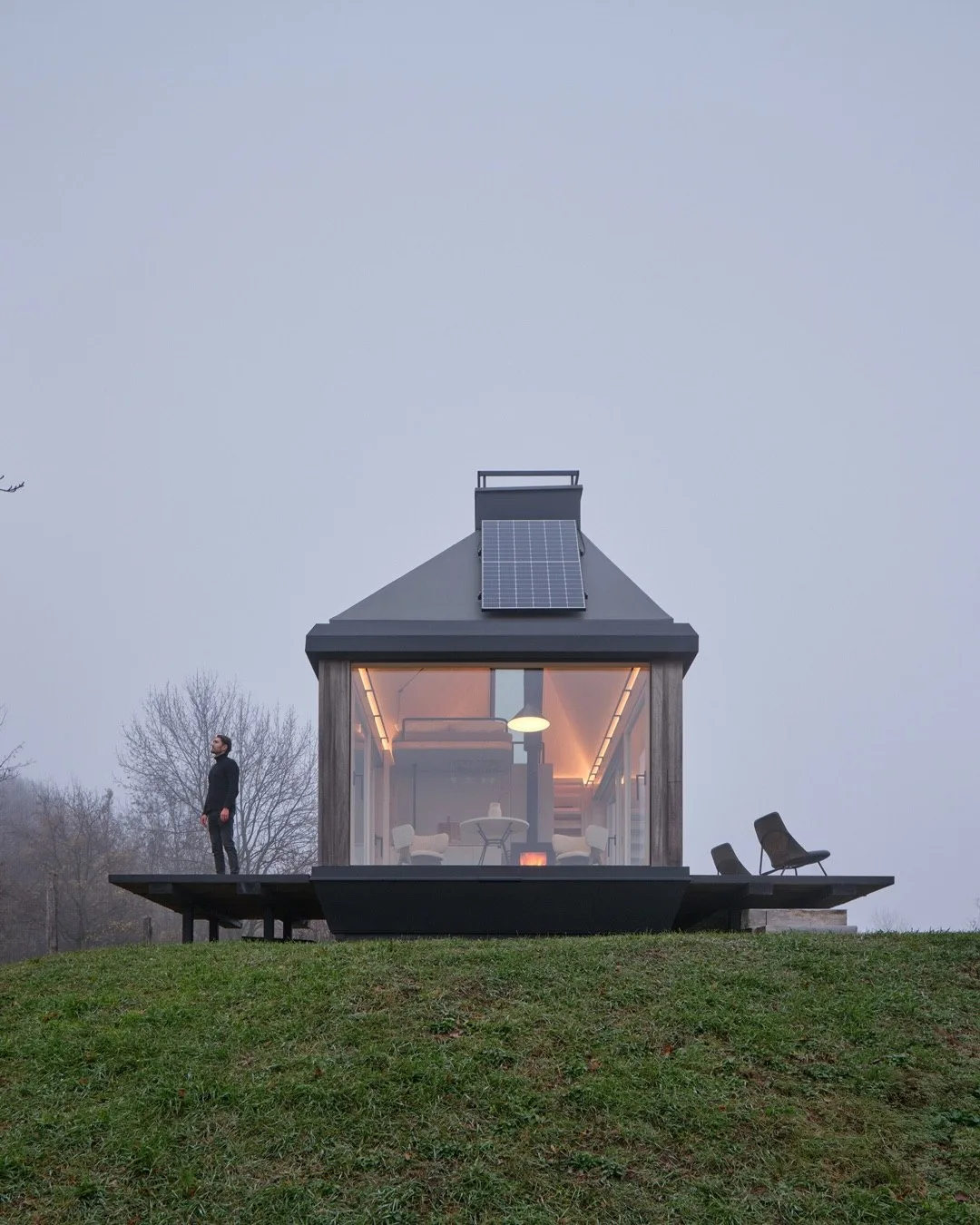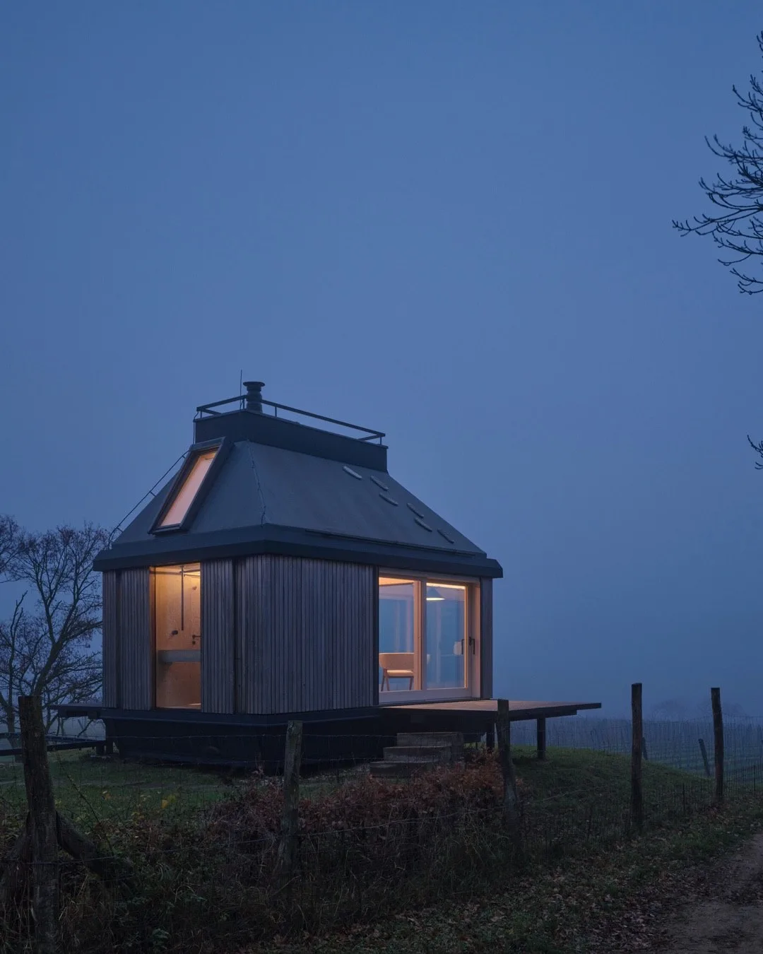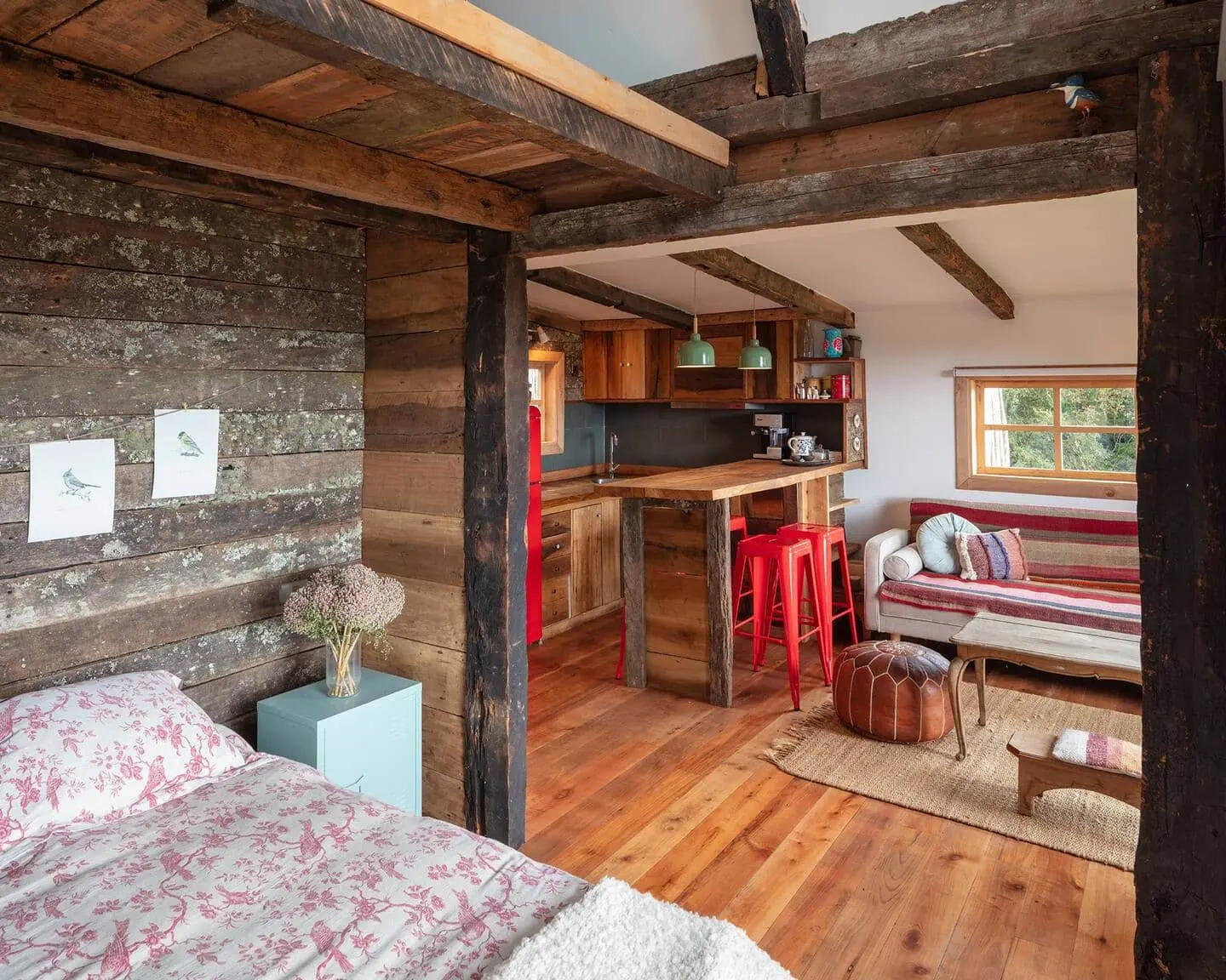 Мини-дом в стиле барнхаус площадью 37м2 в Нью-Йорке на ферме Валли. Эти дома спроектированны как экологически безопасное жилье для работников фермы. В доме представлены такие материалы как конопляный бетон, который хорошо себя зарегистрировал в качестве утеплителя (последнее фото).
