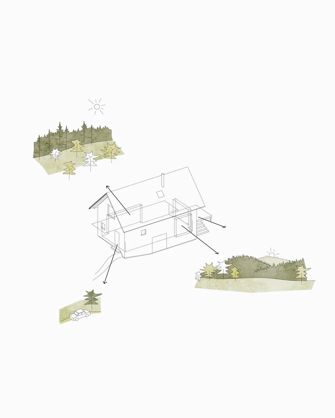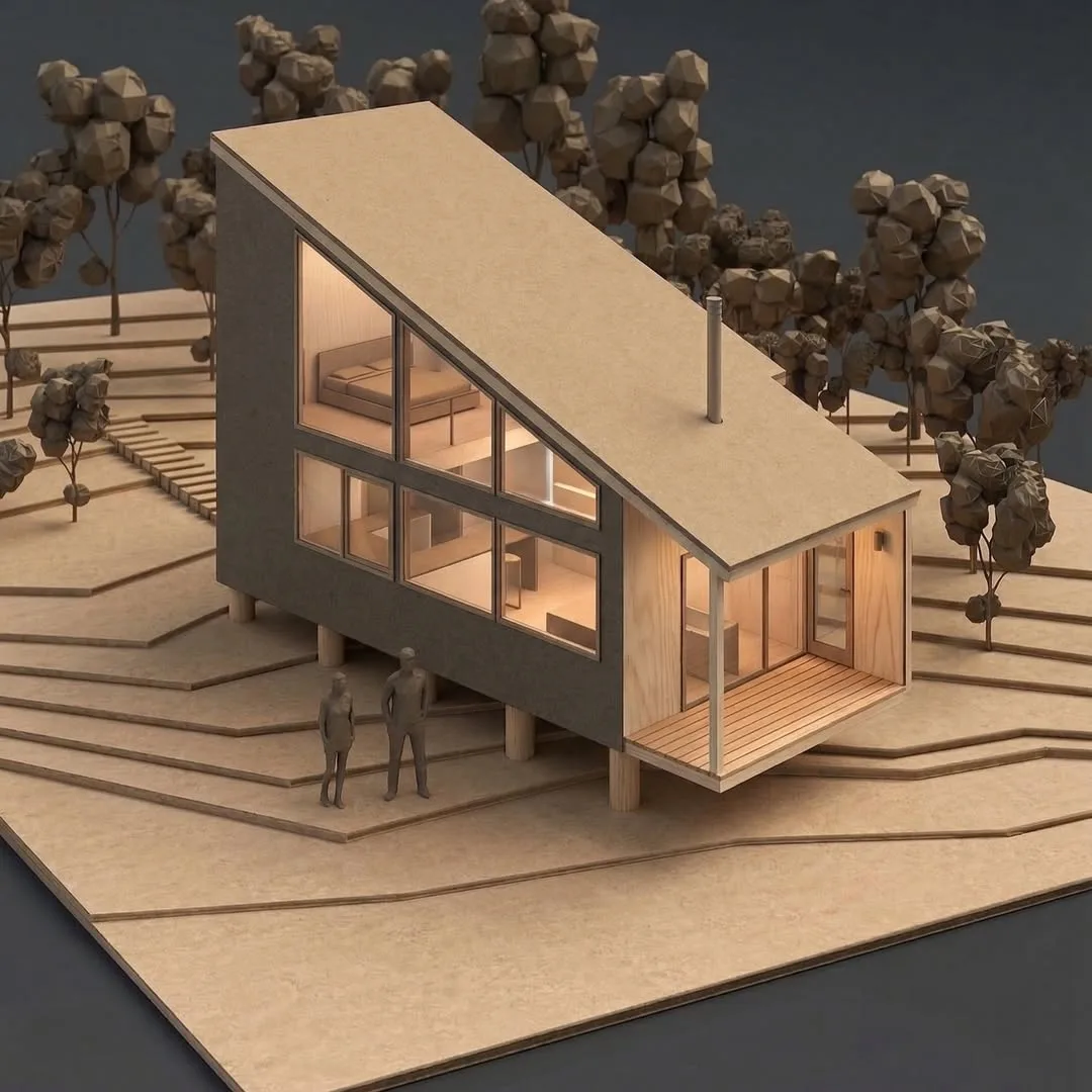Лесной мини-отель площадью 35м2 в необычном архитектурном формате
