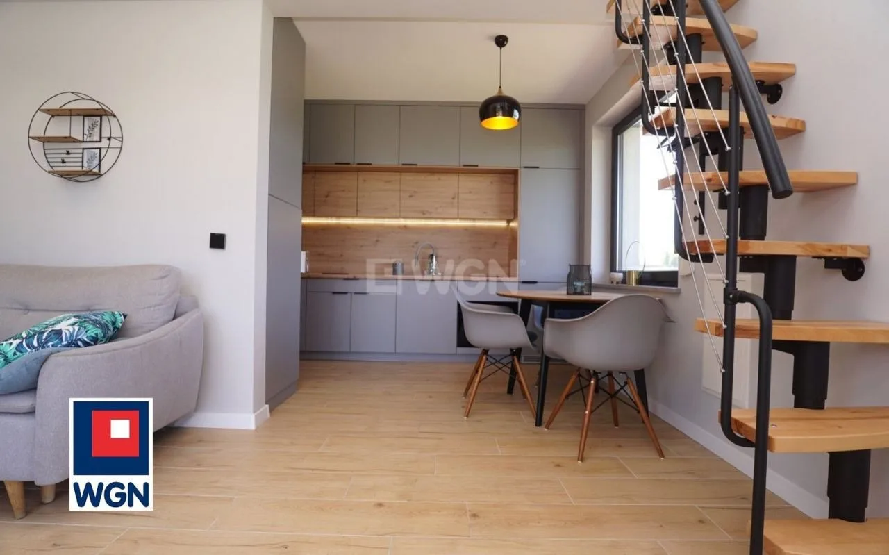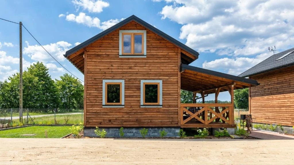 Польские загородные домики площадью 60м2. На первом этаже: кухня-гостиная, санузел, одна комната. На втором: проходная комната и еще одна - отдельная.