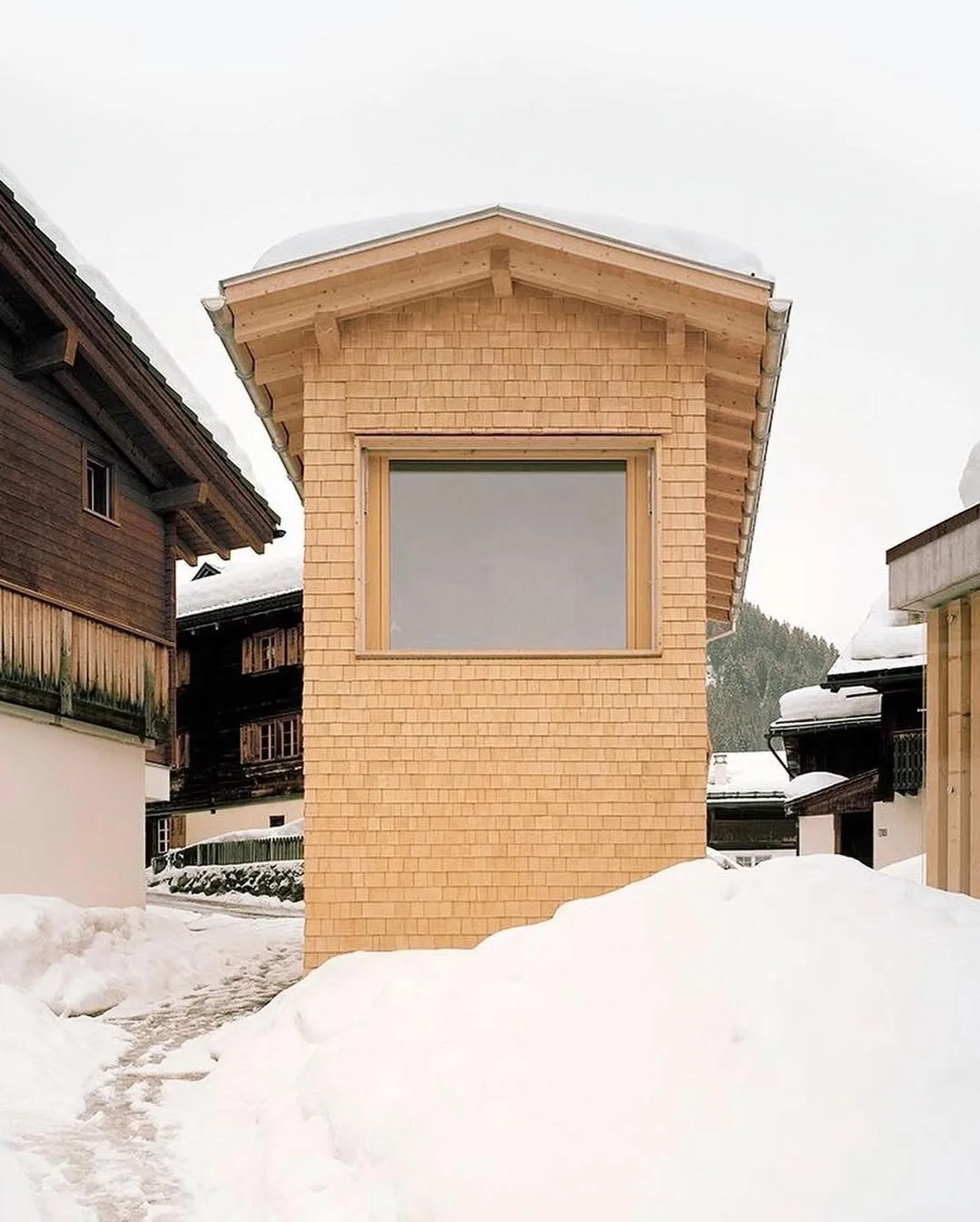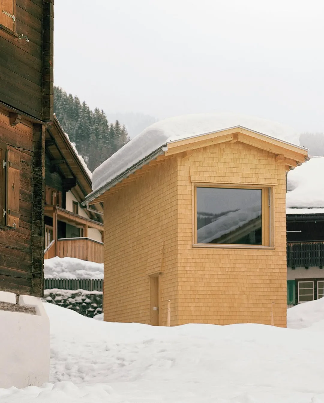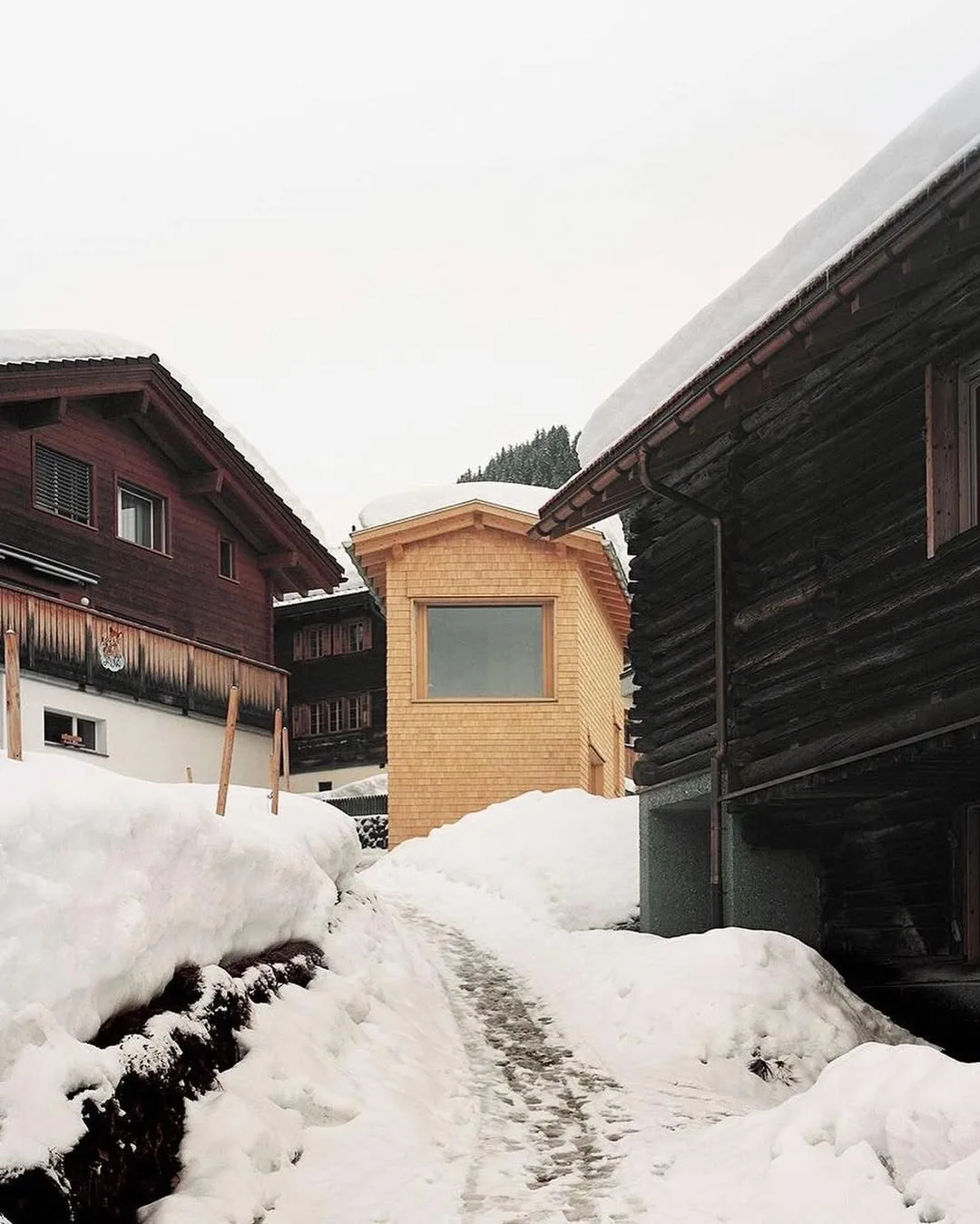 Минишале от известного проектного бюро, получивший награду "Prix Lignum 2021". Дом имеет полезную площадь 55м2., построенный на очень маленьком участке, площадью всего 31м2.