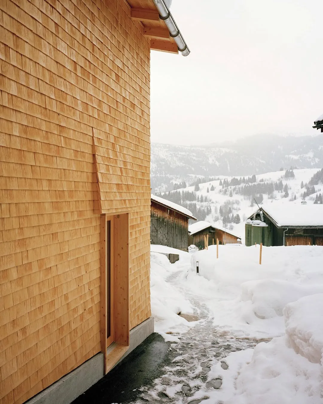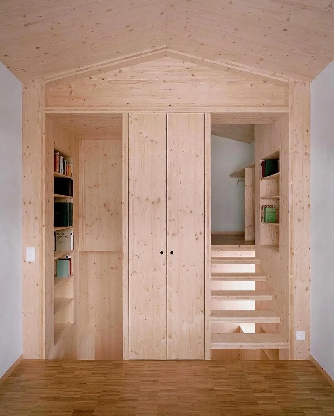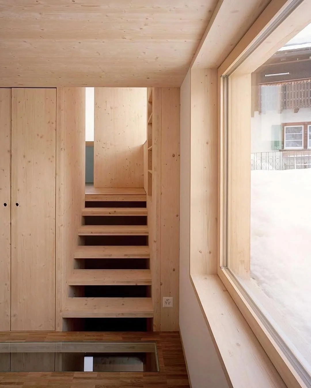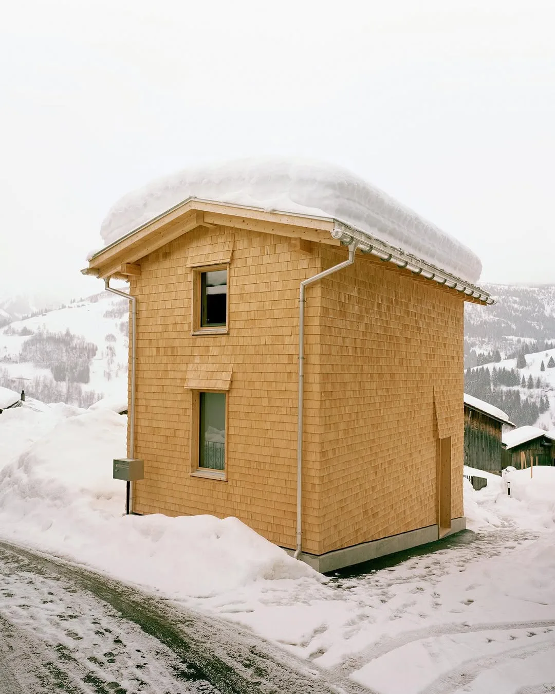 Минишале от известного проектного бюро, получивший награду "Prix Lignum 2021". Дом имеет полезную площадь 55м2., построенный на очень маленьком участке, площадью всего 31м2.