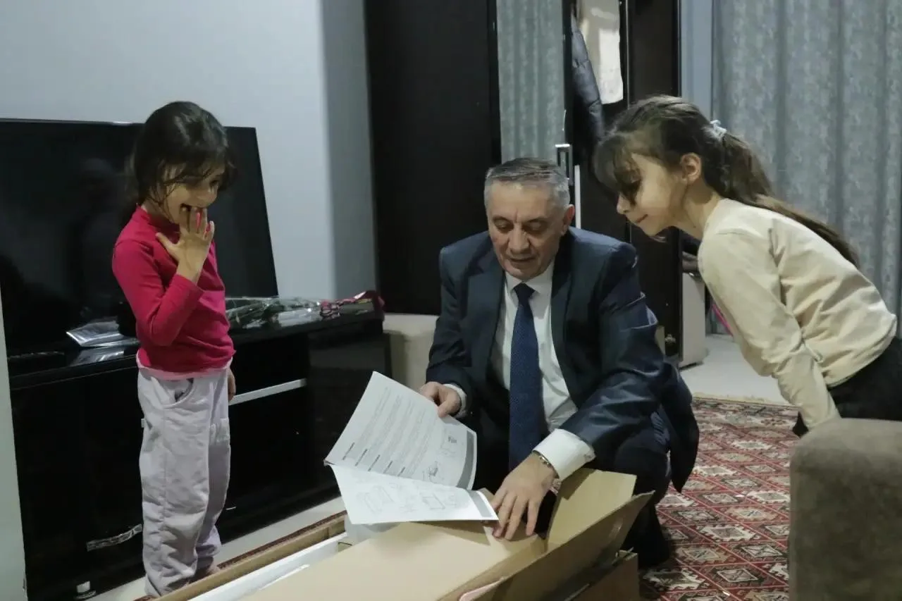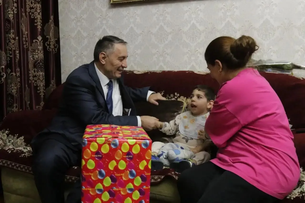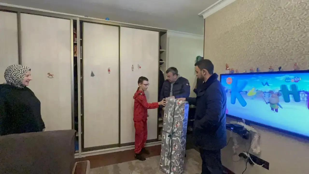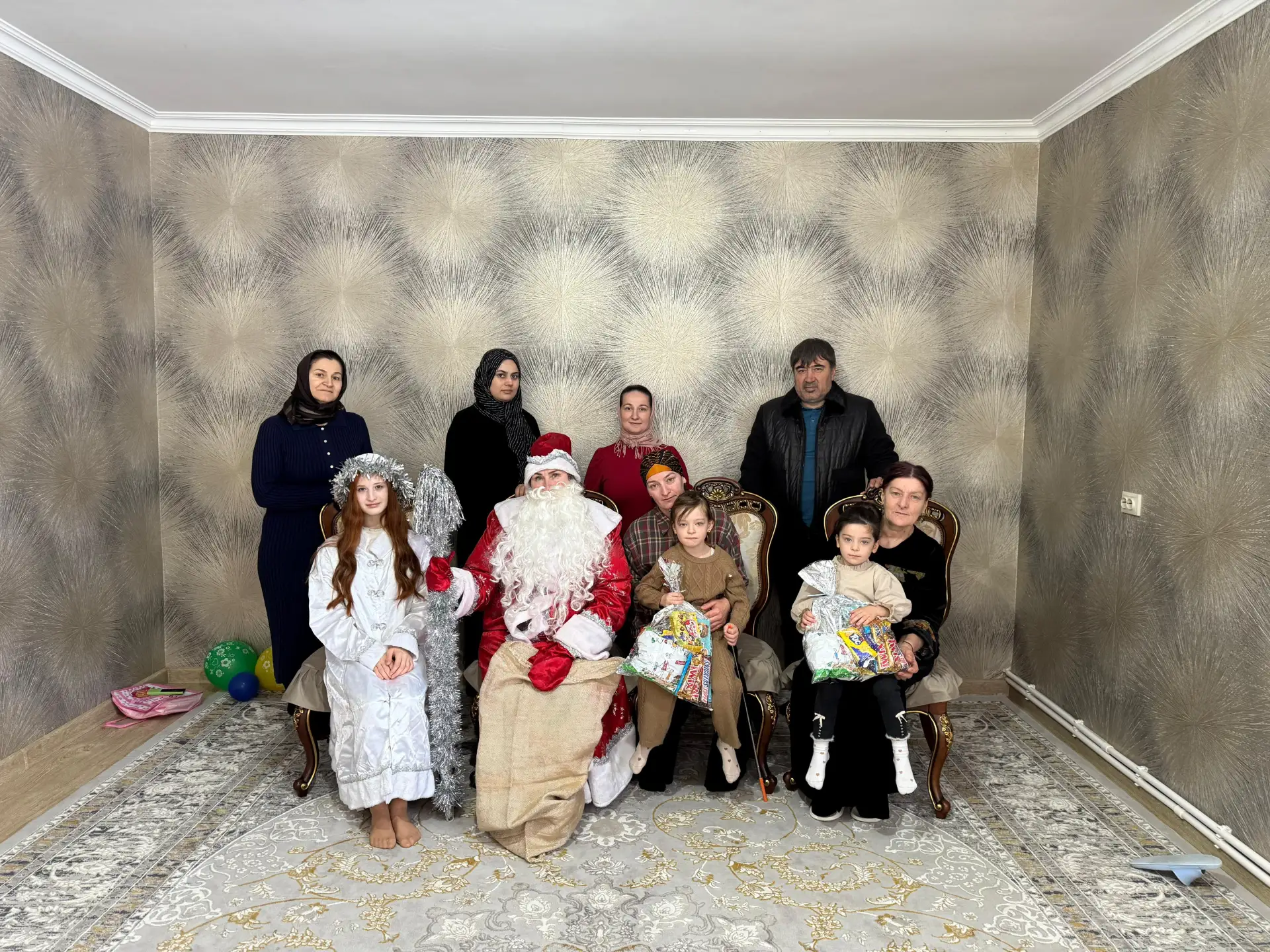 Директор Комплексного центра, директор Социальной защиты и сотрудники центра вместе с Дедом Морозом и Снегурочкой отправились по домам, чтобы лично поздравить детей, проявить заботу и внимание.